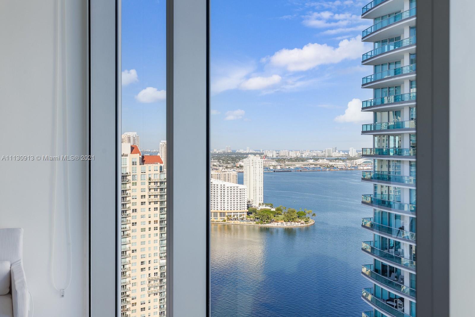 3 bedroom plus den Lower Penthouse with a large storage and 2 parking spaces. Can be easily converted to 4 bedrooms. Spectacular flow-through ocean and bay view from both sides. Two large terraces with water and Brickell skyline view. Porcelanatto and marble floors; 11 Ft ceilings. Great amenities featuring two pools, club house, spa, theater, state of the art gym, children playground, 24 hour concierge, and more. Exceptional location in the heard of financial district, close to A+ school, and easy access to mayor highways.