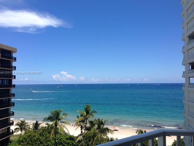 This Unit is A MUST SEE!!! Do not miss this opportunity to own this stunning unit in beachfront building with views of the Ocean, Lake Santa Barbara, and the Intracoastal. This classic, French-Provincial unit is completely renovated. A Steven G designed, Furniture Negotiable. 2 bedrooms and 2 bathrooms. This spectacular condo contains an open floor plan and $250,000 in top quality upgrades. Fully renovated kitchen, bathrooms and bedrooms. A unit you do not want to miss! Close to Atlantic Blvd with ample places to eat, drink and shop, all while enjoying the beach. Immediately available.