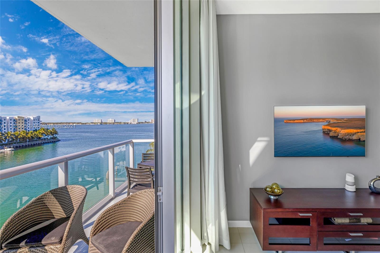 Great chance and opportunity to acquire a nearly "BRAND NEW" unit at the most desirable boutique building in North Bay Village. This incredible 1 bedroom + Oversized DEN and 2 full bathrooms (917 SqFt of living + 132 of balcony per floor plan) since new have always been owner occupied as a second home, the property is very well kept and finished with high quality finishes, very high ceiling, built out closets, an oversized den (more like a second bedroom) with a full size closet and access to a full size bathroom. The directly view to the water from the balcony of this unit is just amazing combined with a very quiet and tranquil place. EASY TO SHOW IT. IT WONT LAST LONG