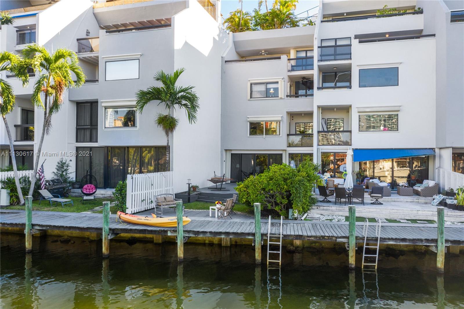 Rarely available 2-story waterfront condo in Poinciana Island Yacht & Racquet Club! Situated in a private & guard gated community, this 2,770 sq. ft., 4 bed, 2.5 bath + den residence is perfectly located, & right on the water! Feel the bay breeze from your spacious patio with over 750 sqft with calming Bay views! Step inside & find sun-filled chic spaces, den/office, gorgeous wood flooring, S.S. appliances, downstairs powder room, all bedrooms upstairs, master balcony, dual sinks in master bathroom, & full size washer/dryer. Enjoy all that Poinciana Island has to offer including tennis courts, swimming pools, a gym, & more! Close proximity to beaches, Bal Harbour Shops, Haulover Park, marinas, great schools, & dining.