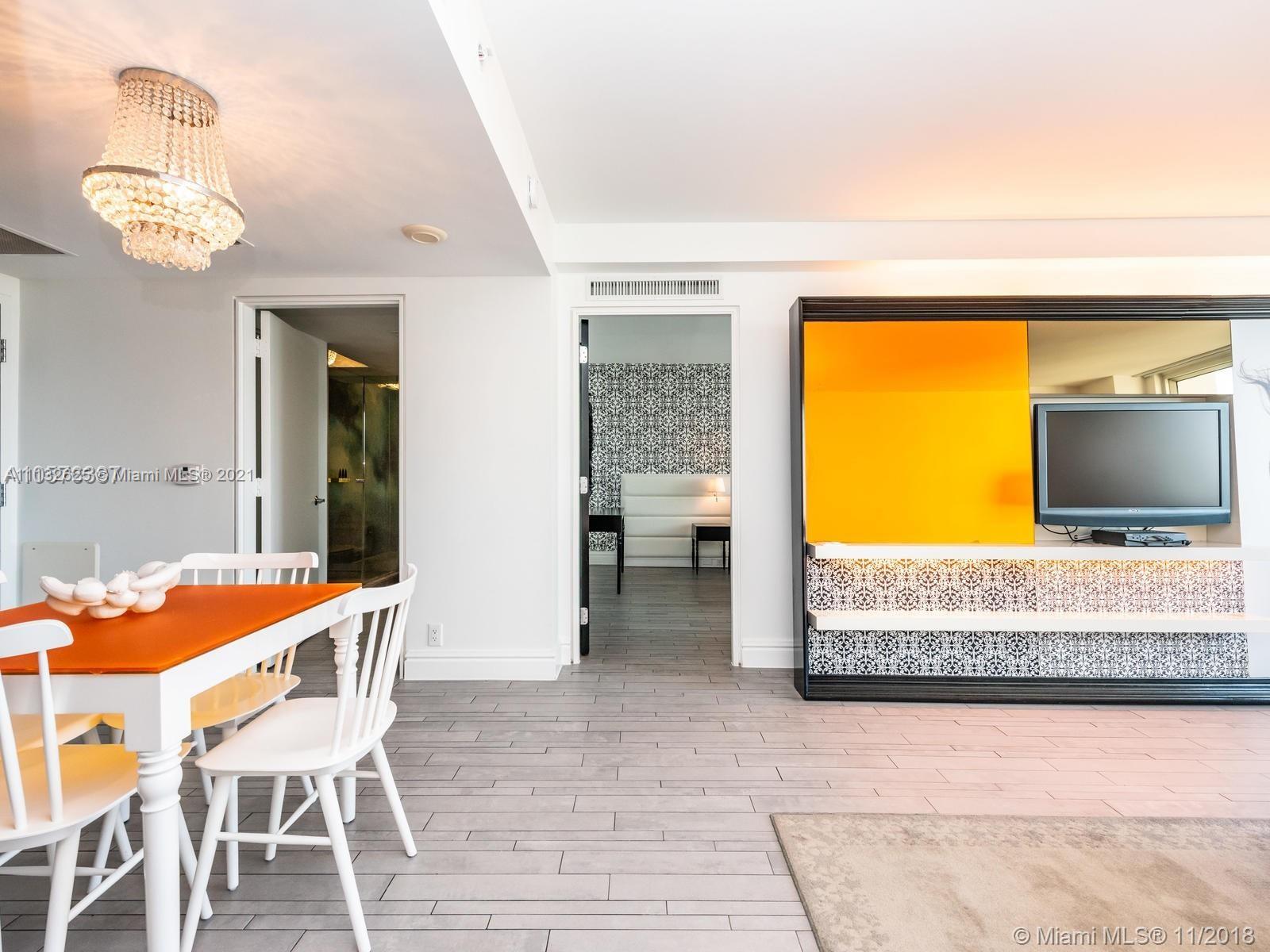 Own this sexy 1/1 condo at the chic 1100 CONDO HOTEL in South Beach. 5* amenities, including; Agua Spa, 24-h gym, huge outdoor pool, indoor/outdoor bars, breathtaking sunset views of Miami skyline from the pool area. Unit is very well kept and offers 1 king bed + so fa bed, two flat screen TVs, kitchen w/dining table, frig, hot plates, micro, coffee machine, very tranquil views of South Beach and Ocean Dr. great investment, no rental restrictions!