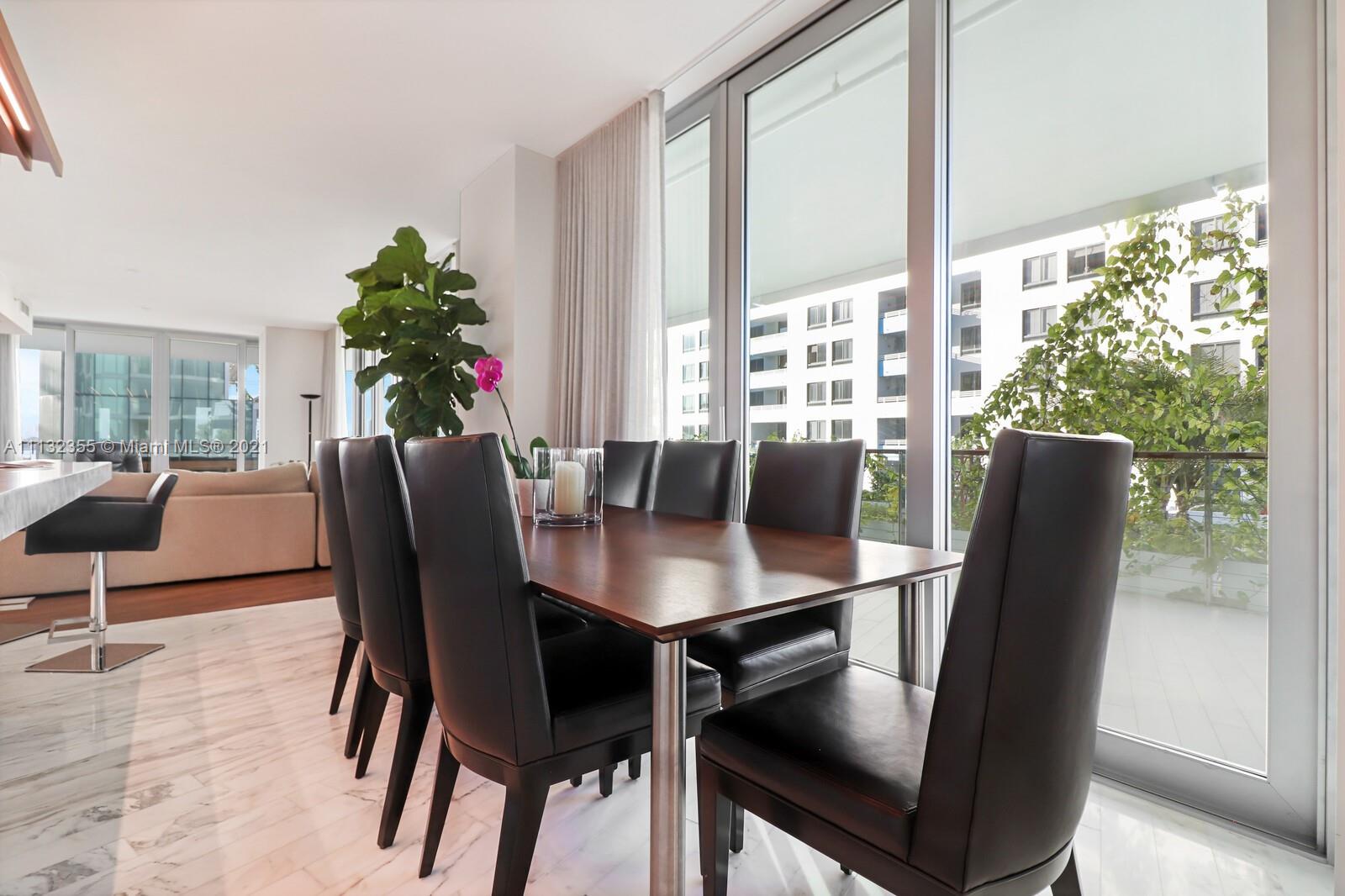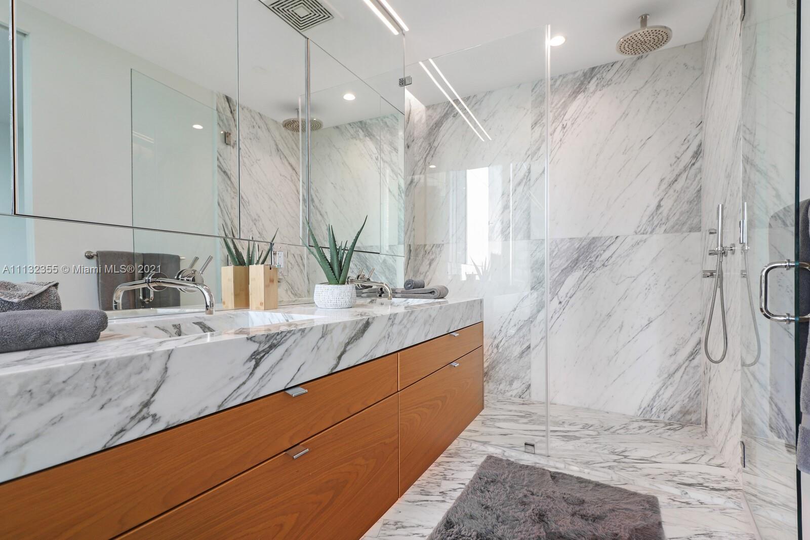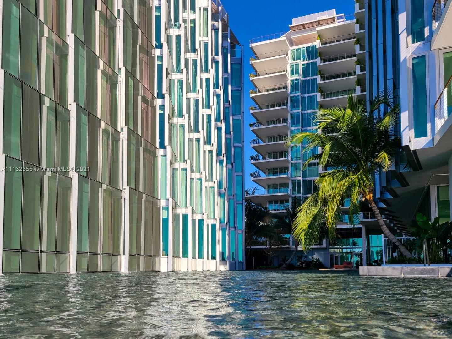 Composed of 59 individually designed waterfront residences around a glittering lagoon, Monad Terrace provides brilliant light, private outdoor space, climbing gardens, unique sawtooth honeycomb facades; stunning sunset views of Biscayne Bay. Kitchens with dramatic sculptural marble island. Master baths with richly veined, spacious stone countertops, marquetry flooring and tiled walls. Other notable features include custom cabinetry & built-in features, designer fixtures, teak flooring throughout.This is a stunning, light-filled floor plan, 3 bedroom 3.5 bath condo with 2691 internal sq. ft. and an expansive wrap around 1800 sq. ft. terrace. The unit also features a private elevator entrance and 2 assigned underground parking spaces.