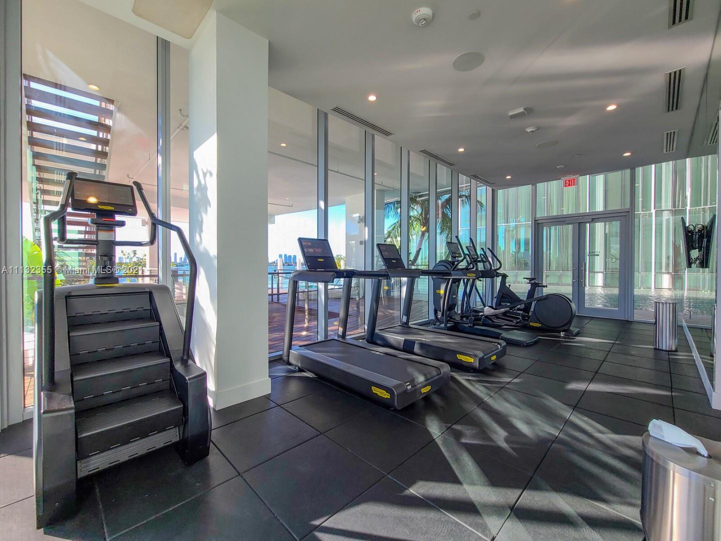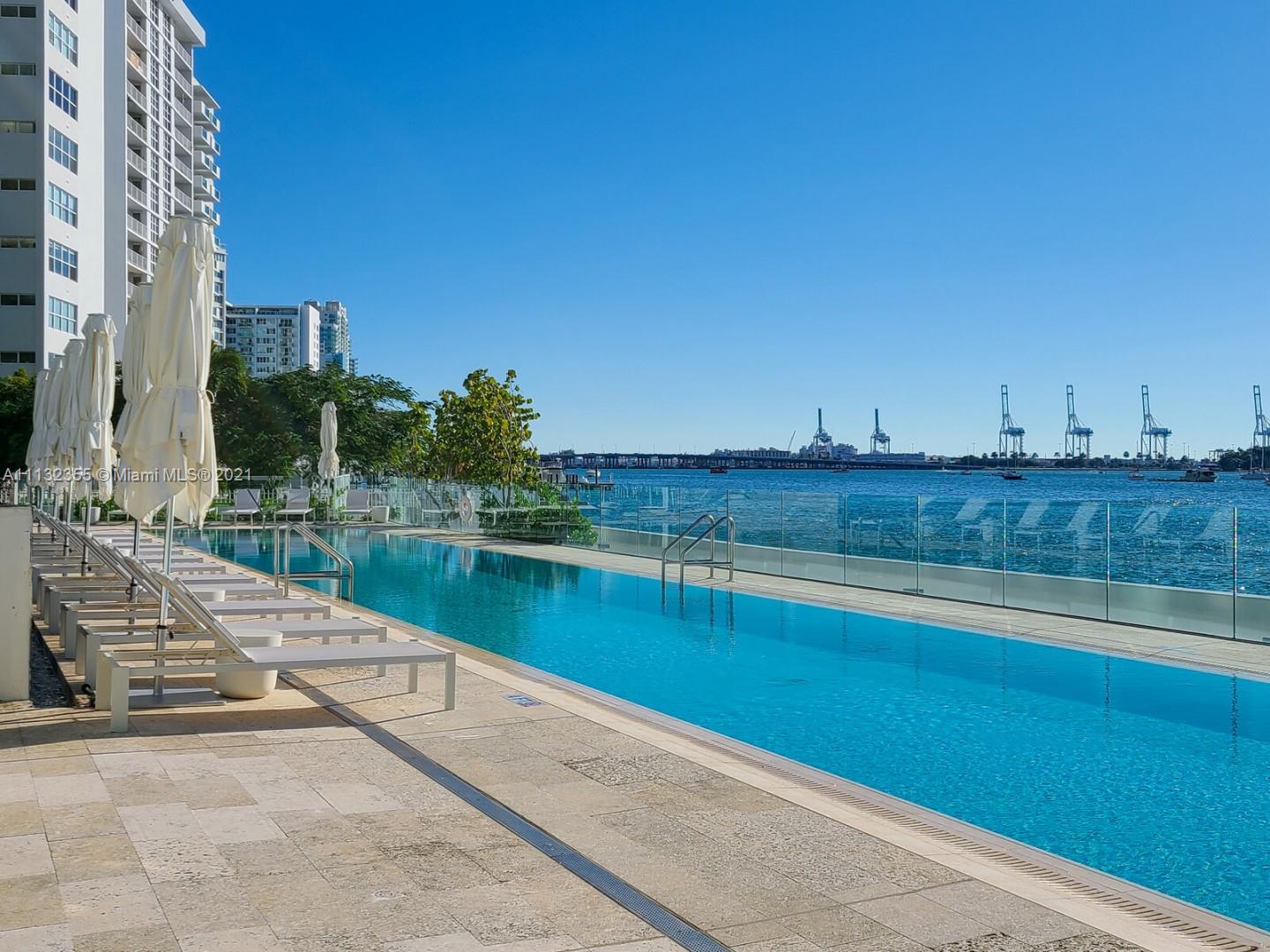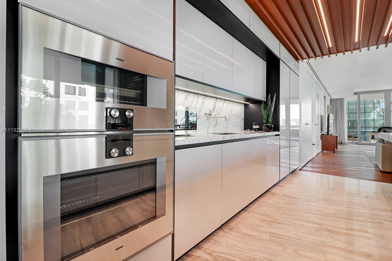 Composed of 59 individually designed waterfront residences around a glittering lagoon, Monad Terrace provides brilliant light, private outdoor space, climbing gardens, unique sawtooth honeycomb facades; stunning sunset views of Biscayne Bay. Kitchens with dramatic sculptural marble island. Master baths with richly veined, spacious stone countertops, marquetry flooring and tiled walls. Other notable features include custom cabinetry & built-in features, designer fixtures, teak flooring throughout.This is a stunning, light-filled floor plan, 3 bedroom 3.5 bath condo with 2691 internal sq. ft. and an expansive wrap around 1800 sq. ft. terrace. The unit also features a private elevator entrance and 2 assigned underground parking spaces.