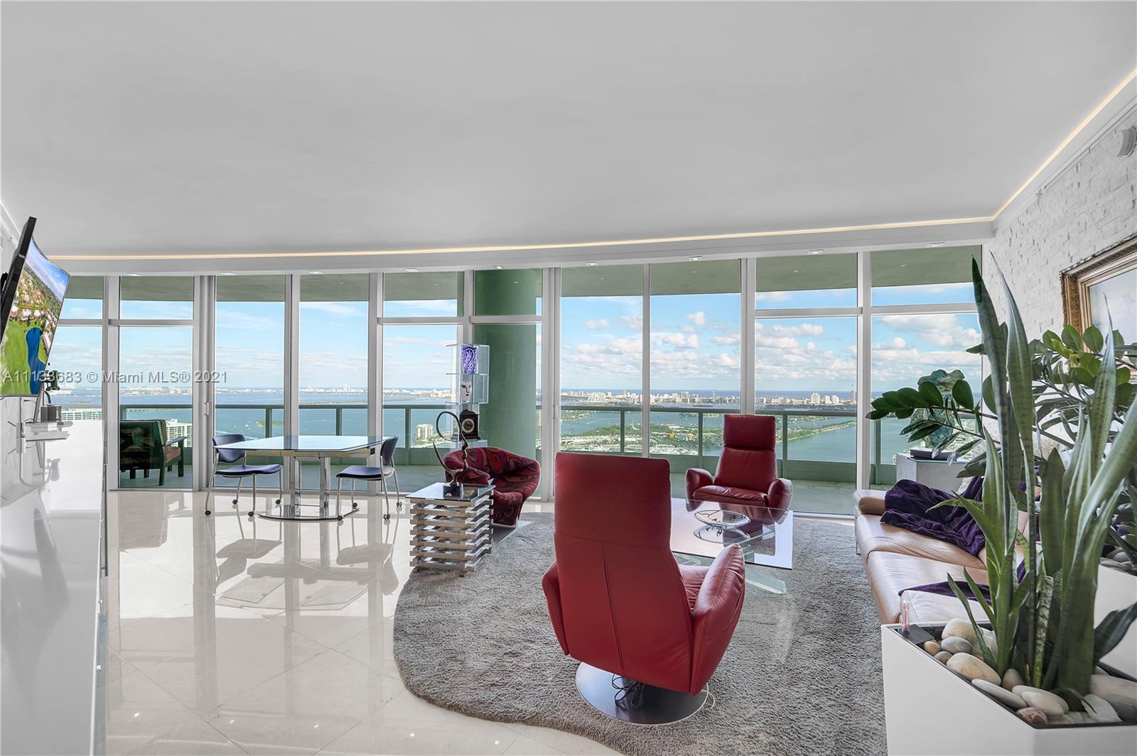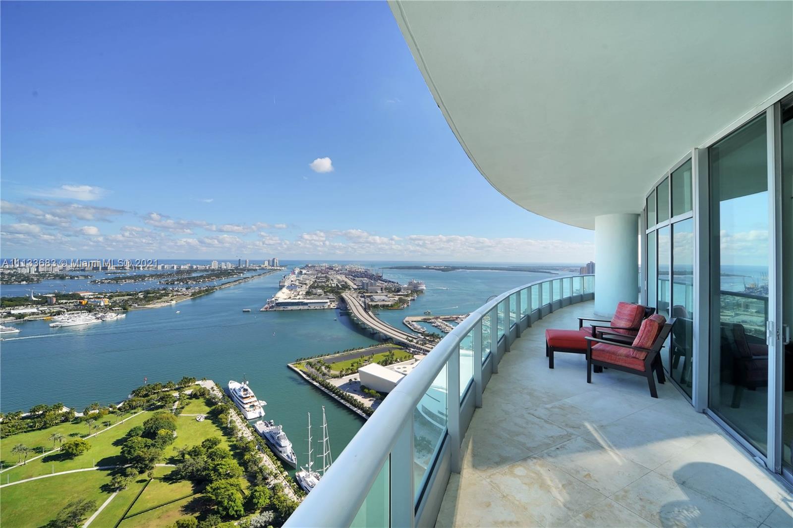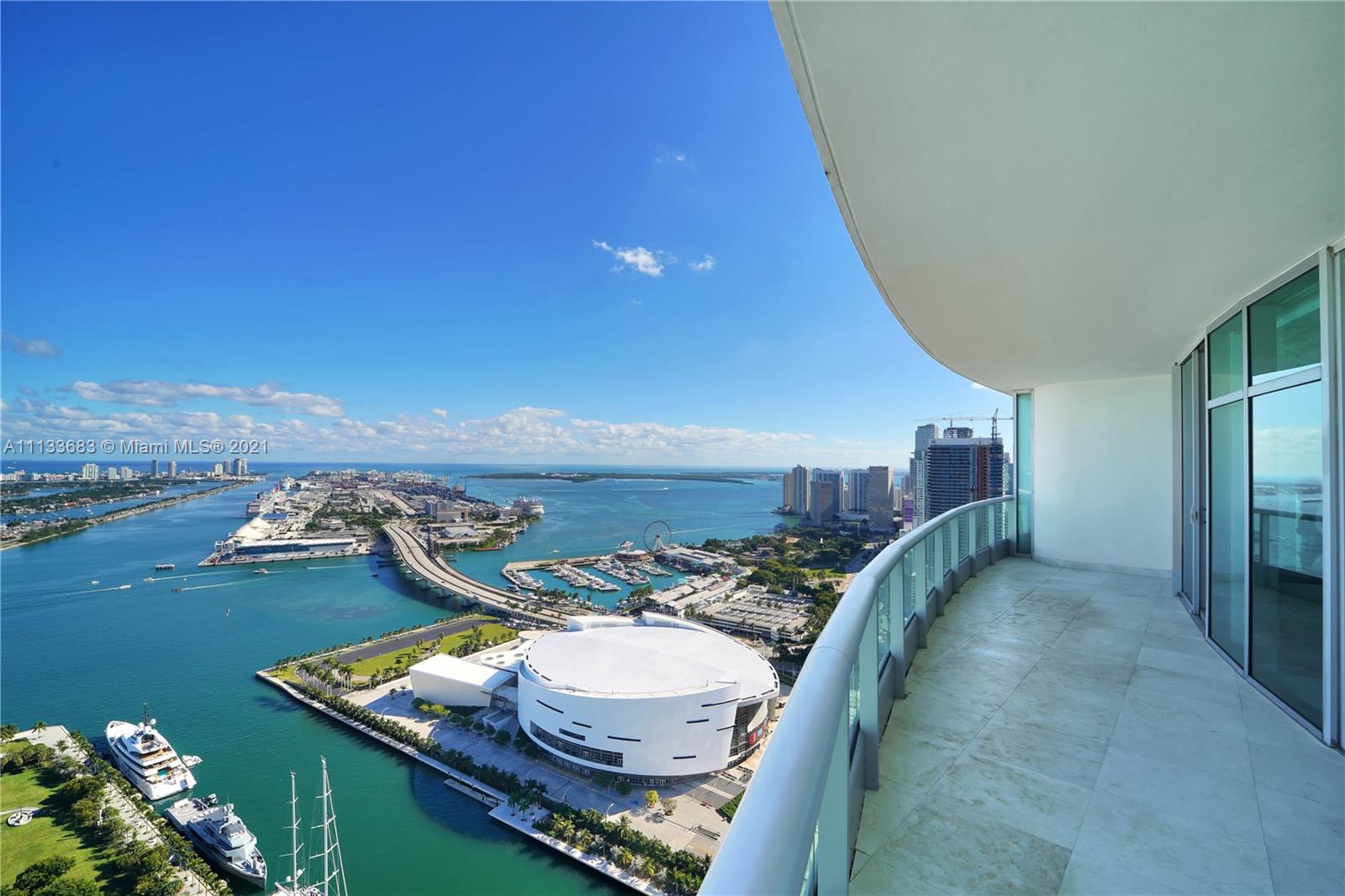 Private elevator opens to large foyer leading to 3 BR + Den, 3.5 Baths with 10ft ceilings. All rooms have direct access to 675 sf of balconies. Entire unit was renovated including new kitchen and baths. Custom gourmet kitchen features Thermador appliances. Wet bar with built in cabinetry and wine cooler in living/dining area. Master suite includes open glass enclosed bath featuring soaking tub, custom closets and dressing area. Home office with built ins. Too many upgrades to list. Open unobstructed views of bay, park, museums, port and DT. Walking distance to Arscht Center, DT, Miami World Center and all transit. Full service bldg with 2 pools, 2 gyms, kids play room, movie theatre, business and entertainment areas and full service spa.