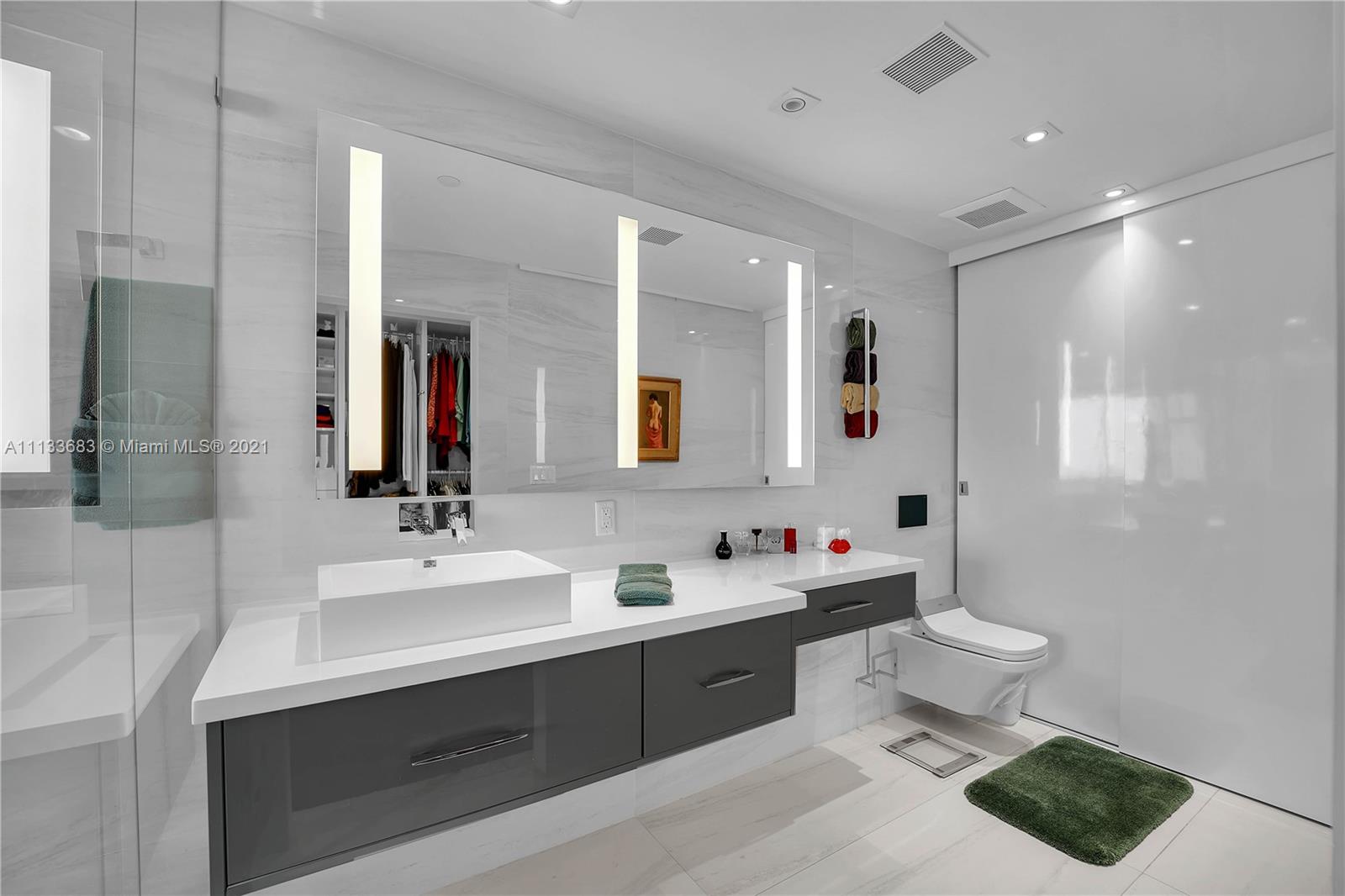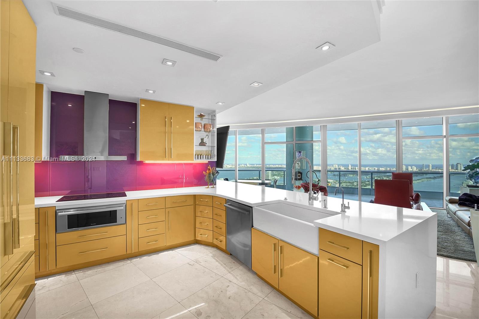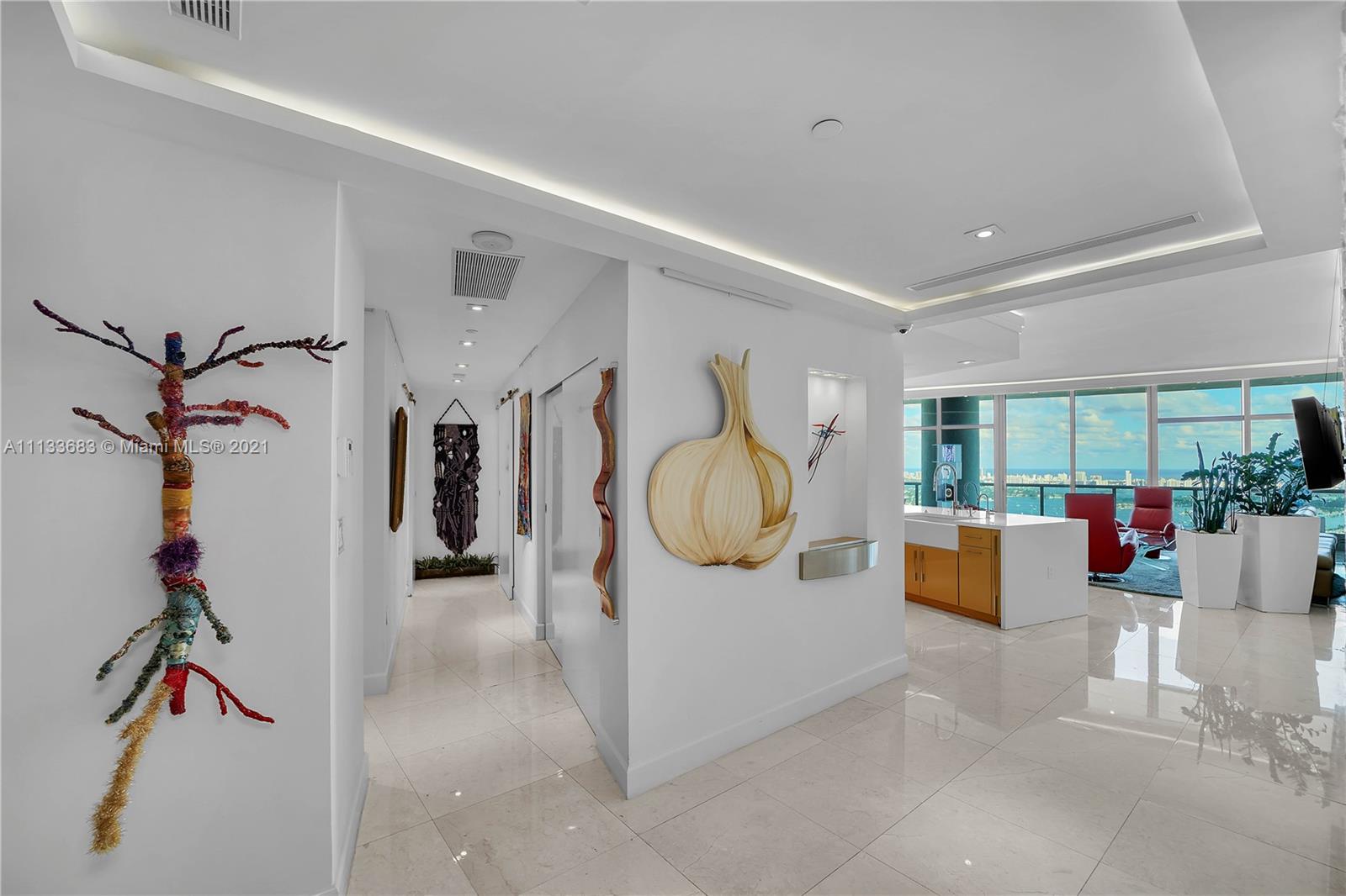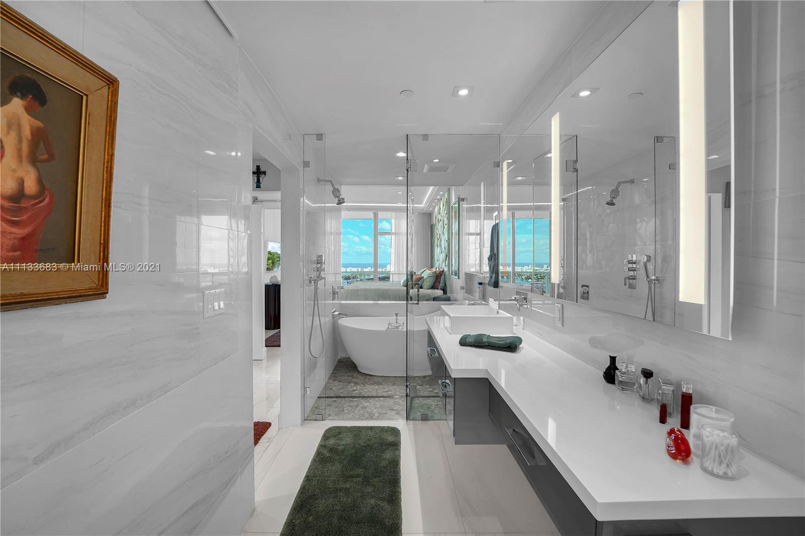 Private elevator opens to large foyer leading to 3 BR + Den, 3.5 Baths with 10ft ceilings. All rooms have direct access to 675 sf of balconies. Entire unit was renovated including new kitchen and baths. Custom gourmet kitchen features Thermador appliances. Wet bar with built in cabinetry and wine cooler in living/dining area. Master suite includes open glass enclosed bath featuring soaking tub, custom closets and dressing area. Home office with built ins. Too many upgrades to list. Open unobstructed views of bay, park, museums, port and DT. Walking distance to Arscht Center, DT, Miami World Center and all transit. Full service bldg with 2 pools, 2 gyms, kids play room, movie theatre, business and entertainment areas and full service spa.
