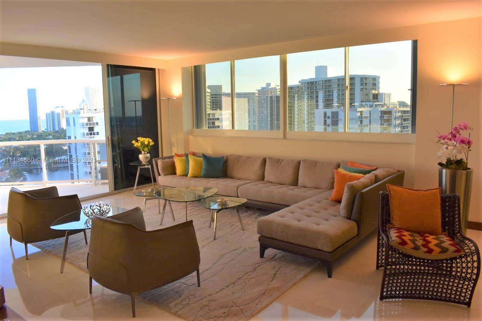 A One Island Place special. Meticulously and completely renovated with a new top of the line Kitchen, walk in and built in closets and bathrooms, all in an elegant marble floor layout. New lightings, A/C, Ceilings, doors, appliances and fixtures. Stunning views from every angle with a double balcony with access from both bedrooms, the kitchen and living room. Experience the Open Ocean, Intracoastal canal, Golden Beach, Aventura Golf Course and the Waterways Marina like you've never seen before. Gorgeous electric shades with an easy to use remote controls all the natural light you want to let in at at your preference and convenience. Accordion Hurricane shutters. Contact agent for an easy showing and come see for yourself. Not on Saturdays! Bonus $5,000 to selling agent