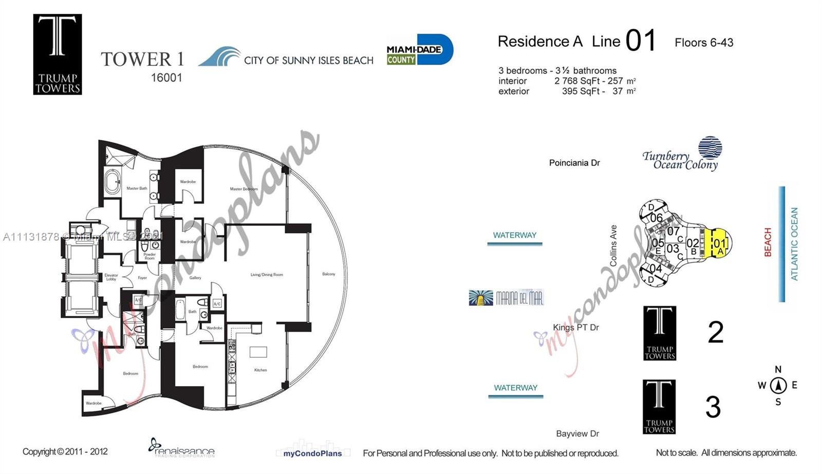 Live your BEST LIFE on the OCEAN! Don’t miss this rare opportunity to live in THE MOST DESIRABLE 01 LINE at Trump Tower 1! UNIT features: PRIVATE ELEVATOR, 3BR, 3.5 Bath, 2,768 SF, floor-to-ceiling & direct unobstructed sparkling ocean views from every room! Italian design kitchen cabinets, Miele & Sub-Zero appls, marble & white porcelain tile floors. BUILDING features: 24-hour concierge & valet parking, state-of-the-art fitness center, health spa, beachfront cabanas, 250-feet of white-sand Atlantic Ocean frontage, Beachfront Cabanas, Multi-Purpose Club Room, Private Restaurant for Residences Only, Pool, Pool Bar & Service. Location, Location, Location! 10 min to the luxury shops & restaurants at Aventura Mall & Bal Harbour Shops. 25 min to FLL airport, 30 min to MIA airport & South Beach.