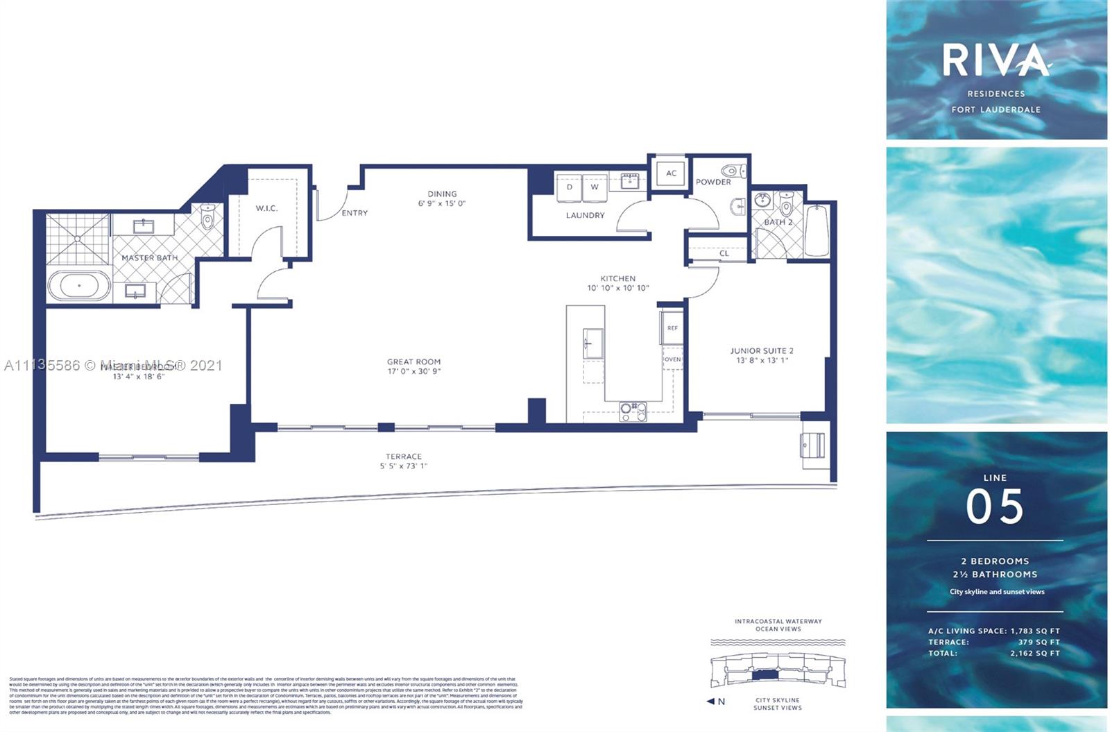 High Floor RIVA Residence Offering Skyline & Sunset Views | 2 Spacious Bedrooms with En Suite Bathrooms | Chef's Kitchen with Italian Cabinetry, Sub-Zero Fridge, Wolf Oven & Gas Cooktop as well as Wine Cooler | Stunning Maple Wood Floors | Spacious Primary Suite with Access to Terrace, Walk-In Closet, Dual Backlit Vanities, Stone & Glass Enclosed Shower | 72' Private Terrace with Summer Kitchen BBQ | 2 Parking Spaces | 1 Storage Locker | 1 Paddle-Board Locker | RIVA Residences Provides 40,000 SqFt of Amenities - Heated Pool Overlooking Middle River, Top of the Line Gym, Yoga Room, Resort Style SPA with Sauna, Steam & Treatment Rooms, Resident's Lounge, Sunset Deck with Jacuzzi, Cucina to Entertain, 3 Suites for Guests, 24/7 Front Desk Attendant, Valet, 2 Dog Walks, 400 Feet of Waterfront.