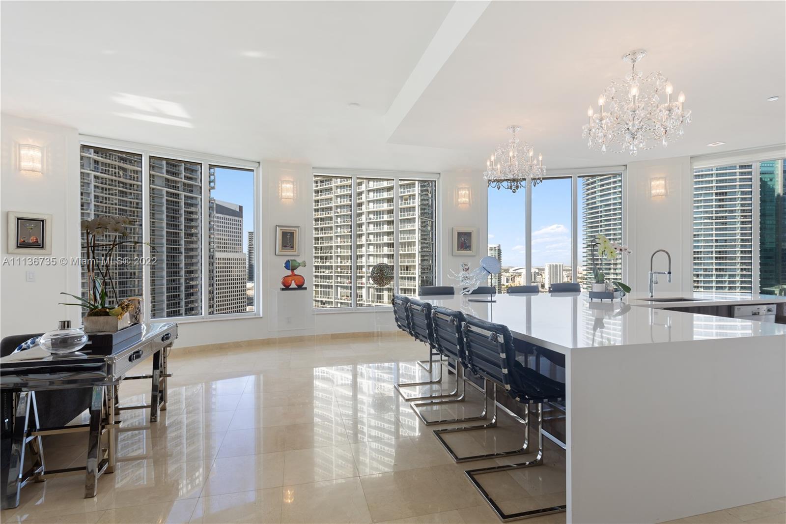 Hypnotizing Water and City Views views from this unique residence with high ceilings. Impressive arrival when you enter this work of art with open floor plan, designed to gather or simply to enjoy! A curated selection of finishes, design and views make this property one of a kind. A residence for the most discriminating client! Showings to start after January 5th. Per owners request