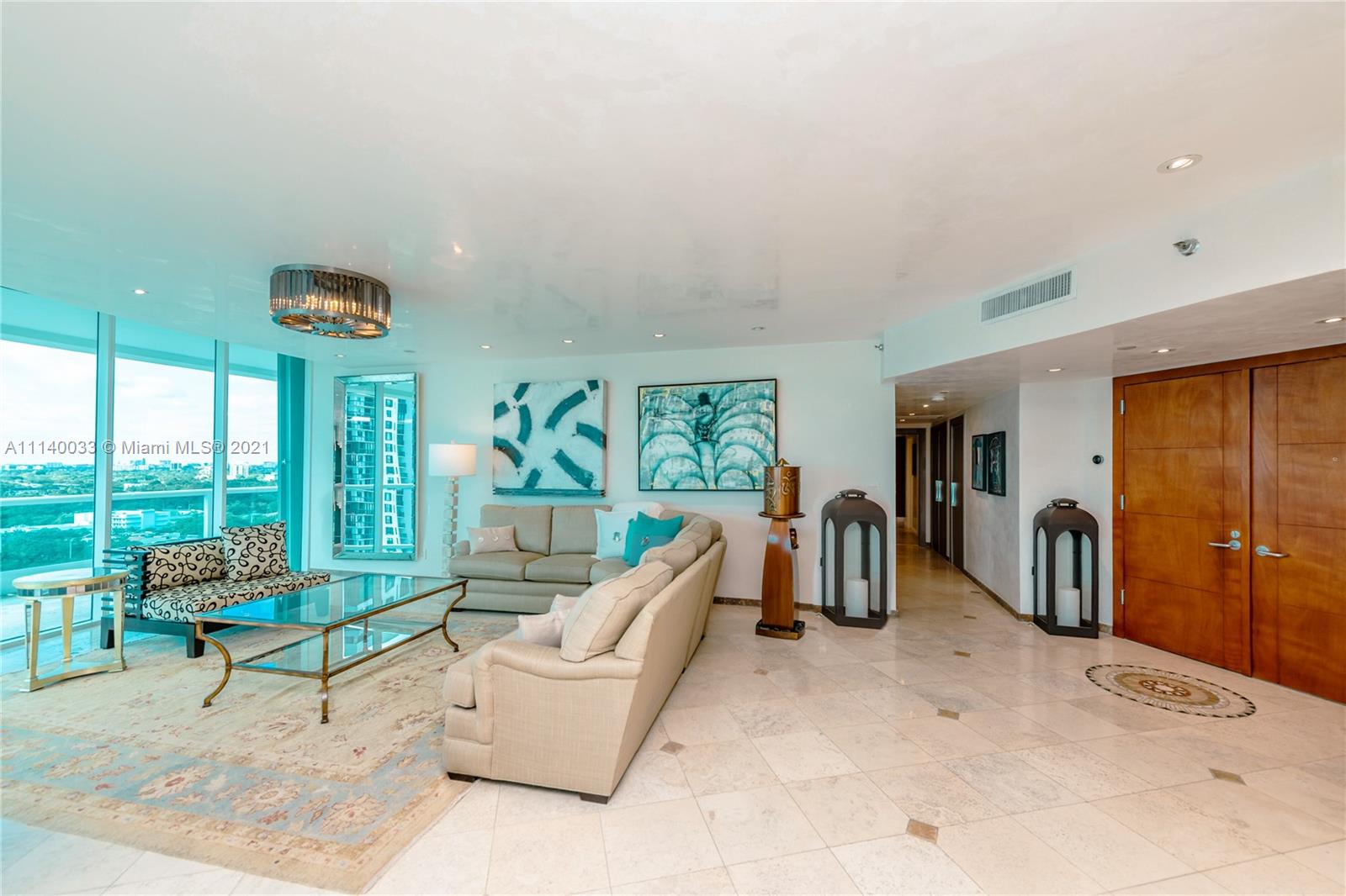 Bristol Tower 2 bedroom(+ den) & 4 bathrooms residence with endless views, offers 2,320 sq ft of serene living space. The living room flows easily into the dining space and kitchen. The spacious living area with den, adjacent to a full bathroom that can be combined into a private bedroom. Beautiful venetian plastered walls throughout the home. Easily convert the guest bedroom to an office with a built-in shelving unit containing a murphy bed system. At the end of the corridor is the master suite with sitting area and ample walk-in closets. An en-suite bathroom with separate his/her sections interconnects by a standing upgraded shower. The residence includes two parking spaces as well as a storage unit. Amenities include tennis court, pool, sundries store, children’s play room and valet.