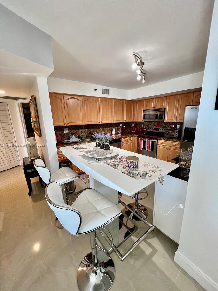 One of a kind! Enjoy amazing views of sunsets, w/ views of Turnberry Golf Course, the intracoastal, skyline & marina from this spacious remodeled apartment. Natural light flowing through this modern apartment located on the 30th floor. Split floor plan 2 bedrooms, 2 baths, balcony with breathtaking views. Full building amenities including: Fitness center, heated pool, Jacuzzi, game room, library and 7 clay tennis courts, basket ball court, pickle ball and dog park. Mystic Pointe is a desirable and all-inclusive gated community. Easy to show! Call listing agent.