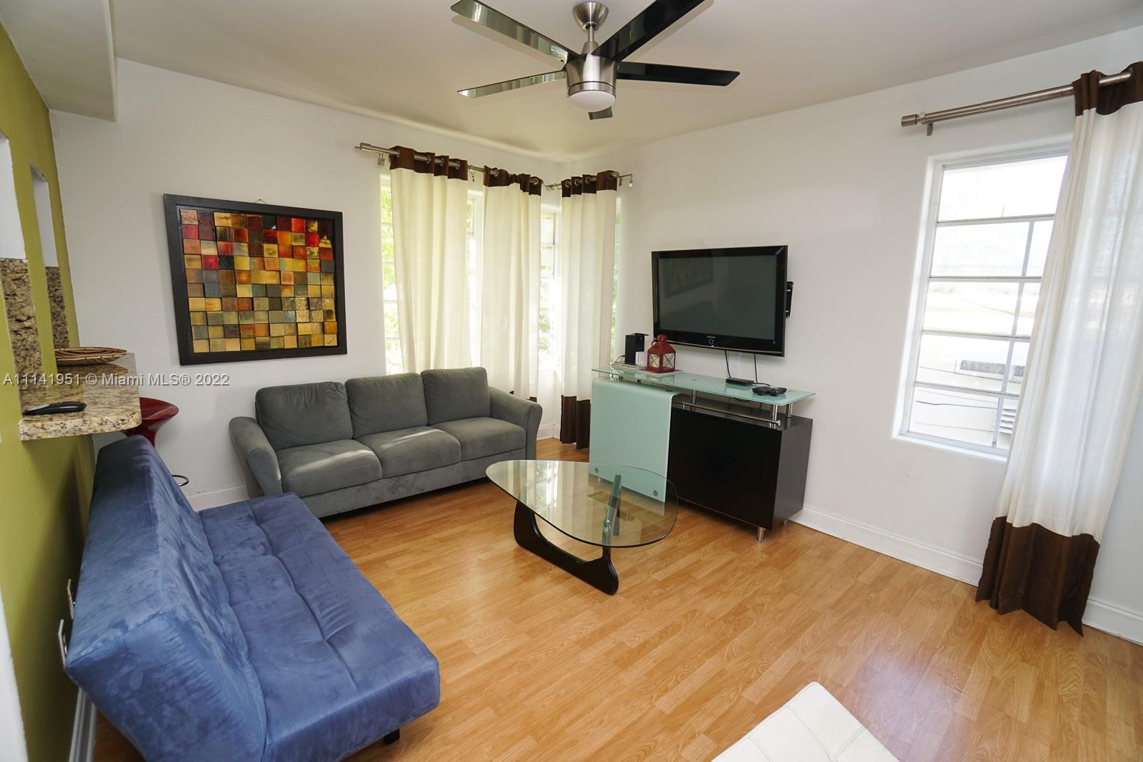 Fully furnished and renovated 1 bedroom. 1.5 bath located in the Flamingo Park, South Beach section of Miami Beach a major entertainment destination with hundreds business and nightlife activities. Corner Unit with lots of light--Includes hardwood floors, Euro-style cabinetry, granite counter, stainless steel appliances, washer/dryer in unit extra storage. Live close to everything but away from the hustle and bustle of busy tourist sections.
