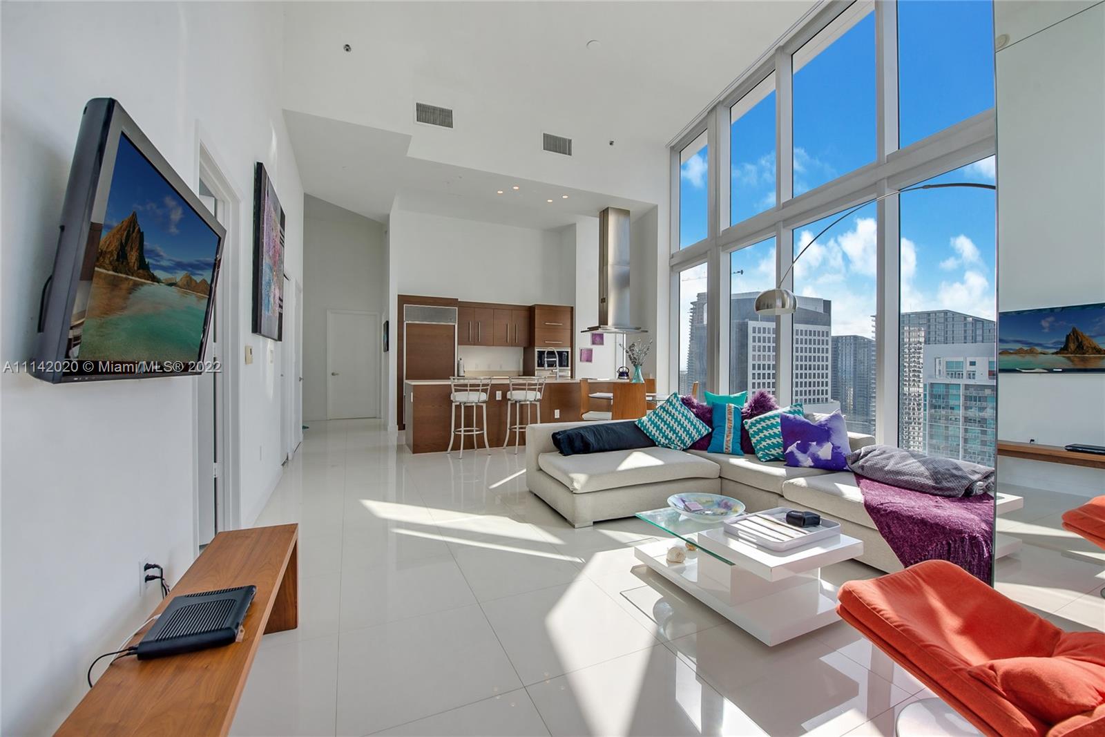 Soaring 16 Ft. High Ceilings greet you in this light and bright 2-bed 1,327 sq. ft. corner Unit at Icon Brickell. See the bay and cruise ships with gorgeous sunsets from your balcony. Unit #4110 is an impeccable condition featuring: 24 x 24 white tile floors, upgraded recessed lighting, upgraded sunscreen and blackout shades. The living room is a glass jewel box with floor to ceiling glass throughout.