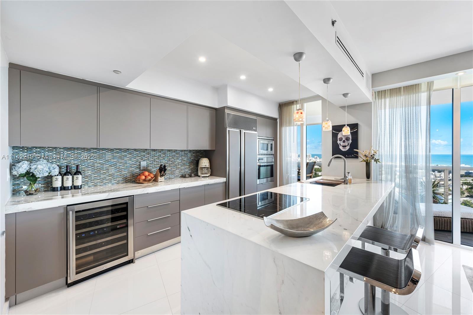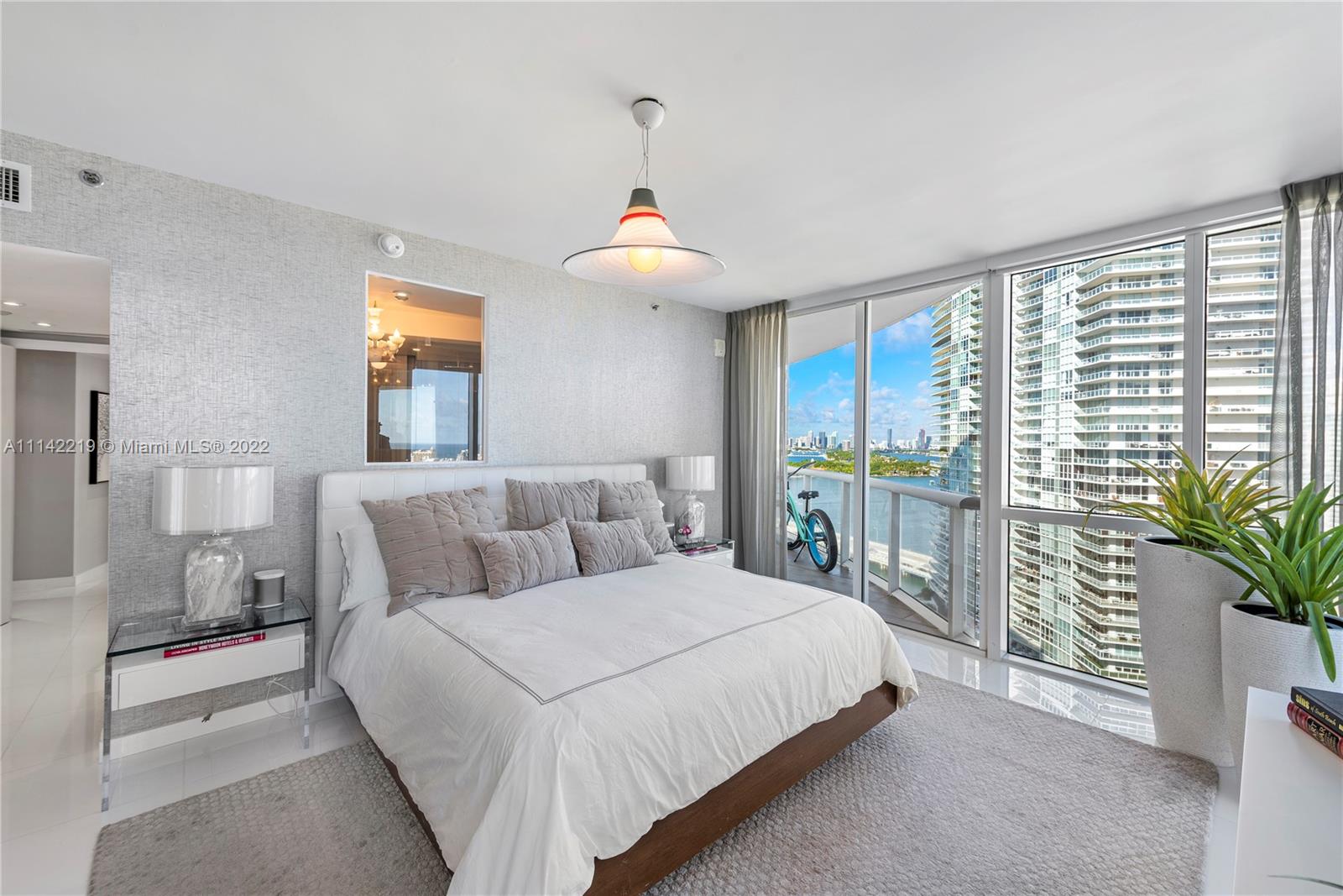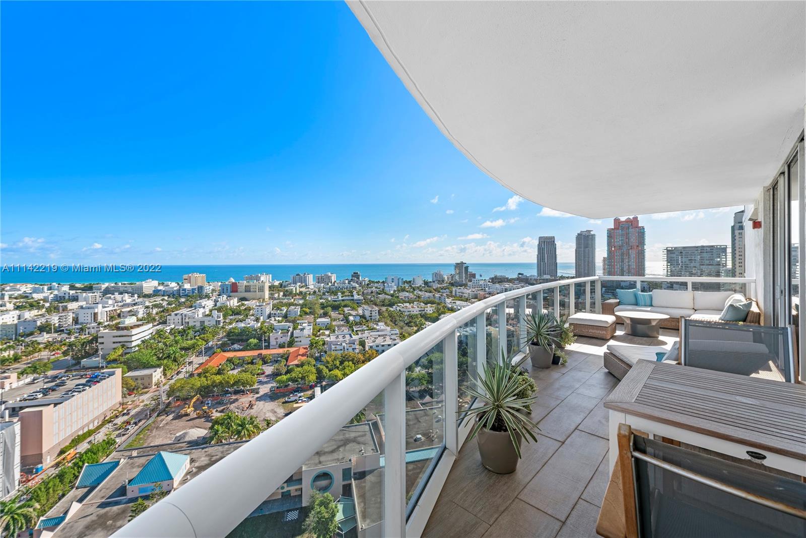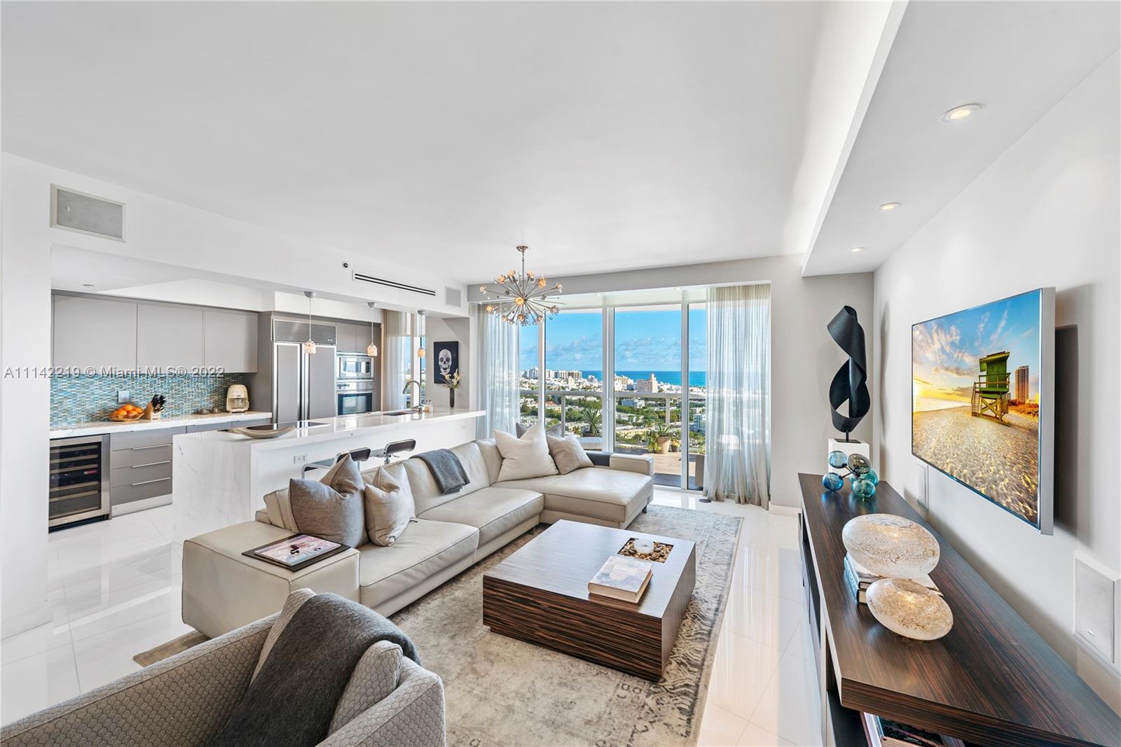 Enjoy high-rise living in SoFi's iconic Murano Grande. This stunning, extensively remodeled 2/2 residence offers a generous open floor plan. Custom soffits with down lighting create an intimate setting throughout the living room. Features a sleek kitchen, Porcelanosa tiles throughout the bathrooms and balconies, California closets, and more. A stylish design adorned with Philip Jeffries wall coverings create a modern and luxurious atmosphere. Complemented by one-of-a-kind light fixtures and mirror purchased from the Isle of Murano, no detail has been left unturned in this captivating residence. Floor-to-ceiling windows throughout and a combined 416 SF of terraces make it easy to enjoy sweeping 270-degree views of the sunrise over the Atlantic Ocean, Miami Beach and Biscayne Bay.
