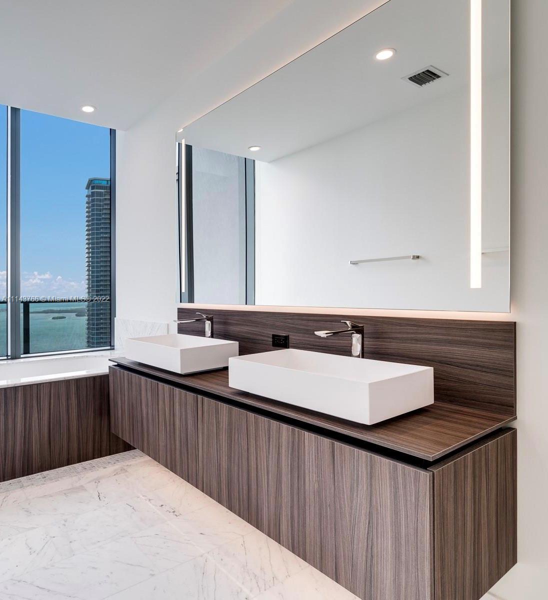 This Penthouse unit features 10-foot 6-inch high ceilings, floor-to-ceiling sliding glass balcony doors and energy-efficient, casement windows Spacious private balconies with Brickell City Skyline views. The amenities at Brickell Flatiron are some of the best in the city. Among them are a rooftop pool located on the 64th-floor offering 360-degree, unobstructed water and city views; a rooftop spa and fitness center with private steam, sauna, and locker facilities; an 18th-floor lap pool; a children’s playroom and pool; a full-time doorman and concierge; a private movie theater; wine room and cellar; and social lounge. On the ground-floor level, Brickell Flatiron has a fine-dining restaurant called Sexy Fish.