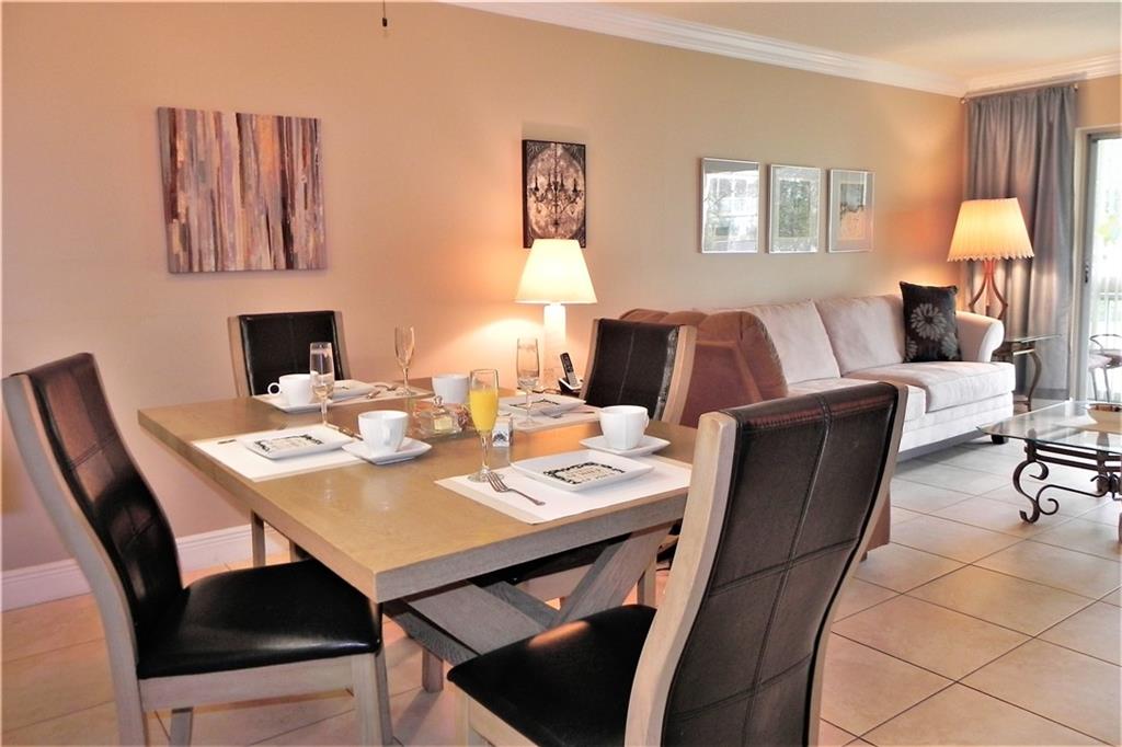 Absolutely lovely, completely furnished and equipped 2/2 w/double balcony overlooking pool and garden areas. Over-55 building. Enclosed balcony has screens and windows to let in the fresh air and keep out the rain. Open kitchen has ample pantry space. Tile throughout living areas & guestroom. Crown moulding in living/dining areas. Laminate flooring in master bedroom. Lots of closets and cabinet spaces. Large primary bedroom has a desk/vanity area and a walk-in closet. Walk in shower stall. Hall bath has tub/shower combo. Amenities include 4 pools, meeting room, fitness room, tennis & pickleball courts, Rentable clubhouse with indoor kitchen and outdoor bar/BBQ area. Minutes from downtown, Hollywood beach and airport. OK to lease seasonally after 2 yrs. No pets. 20% down per association.