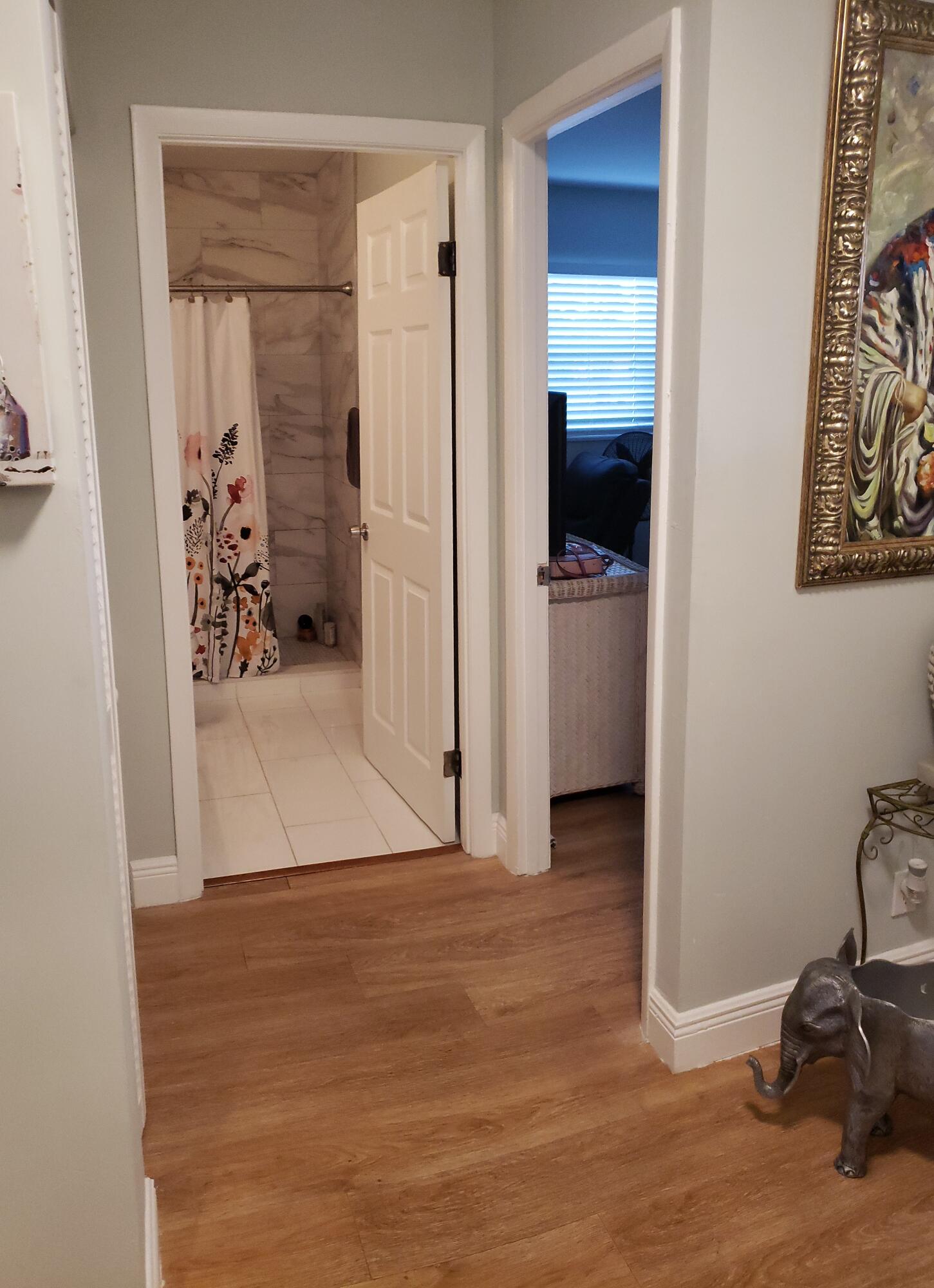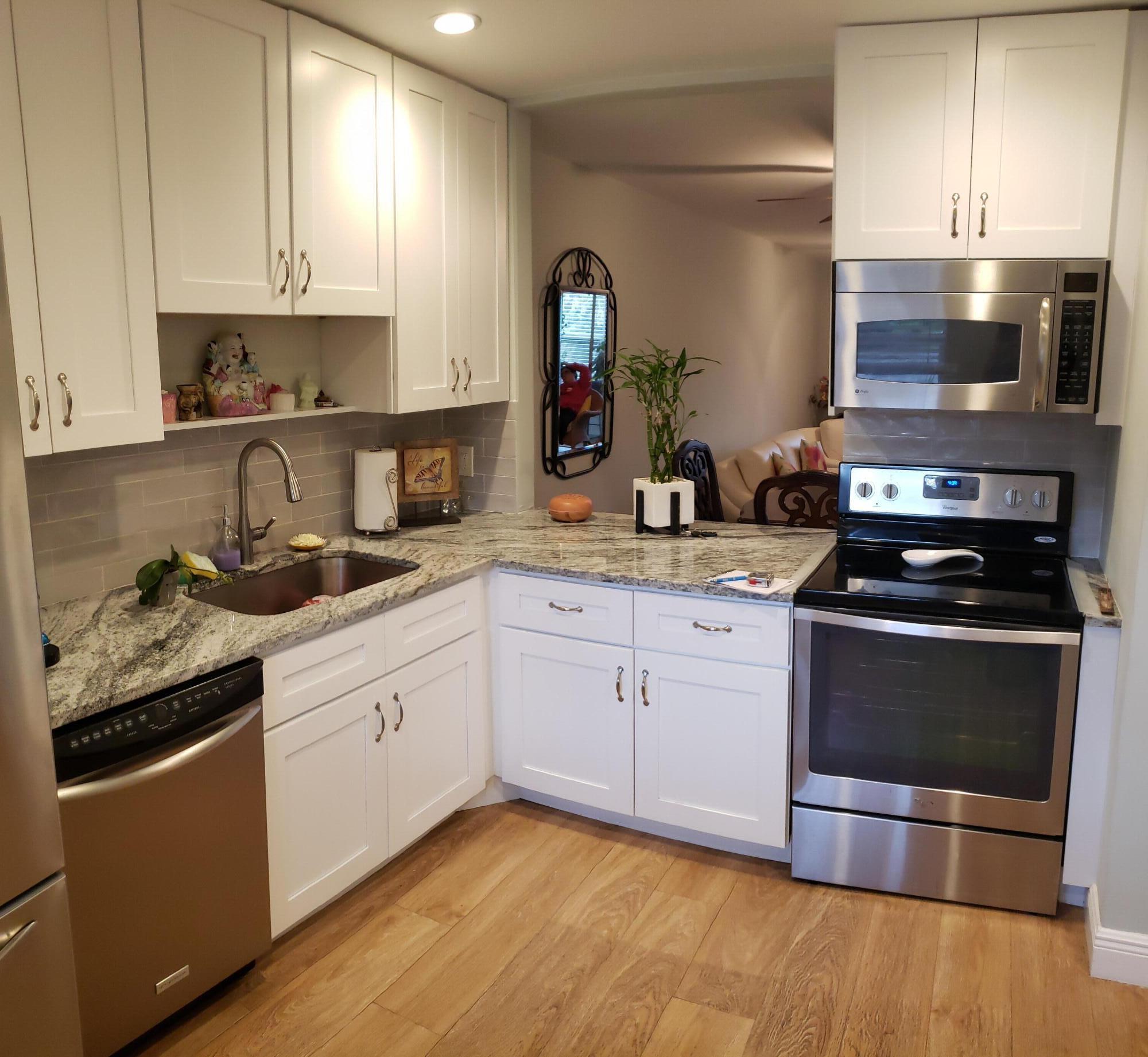 The condo has been totally updated with new kitchen, bathrooms, bathroom tiles, freshly painted, new window blinds, new sliding door, new AC, full size Washer & Dryer. The unit has a beautiful water view from the large back porch. Corner unit, also larger front patio with plenty of guest parking.