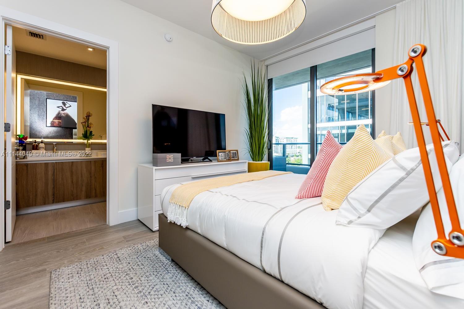 Beautiful 1 BR/ 2BA + DEN residence in the new center of Aventura City. New exclusive community- a city within a city! Unique urban lifestyle with over 50,000 square feet of retail at your doorstep: Pura Vida, Solid Core, Graziano's, Bartaco, Starbucks, Barrys Bootcamp, and more! This is not just another residence; this is a lifestyle! Walking distance to the Aventura Mall, Whole Foods, Target, and much more. Electric vehicle charging station available in the parking garage. This residence has 2 full bathrooms(shower and a bathtub) and a Den(extra room without the window that can be used as a library, home office, TV room, or even spare bedroom). Sold UNFURNISHED. Perfect for investors- Can be rented in the first year of ownership. Can be rented 4 times a year.