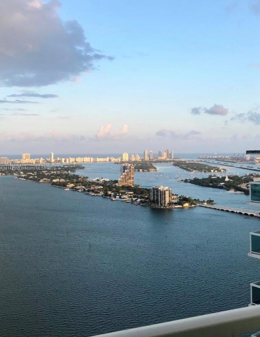 Incredible views of Biscayne bay and Miami Beach from this 39th story 1 bedroom apartment. Open kitchen layout, stainless steel appliances and tile flooring throughout. Building includes some amazing amenities, large gym, movie theater, two story party room. Centric to Miami Beach, downtown, airport. Available to start showing after January 17, 2022