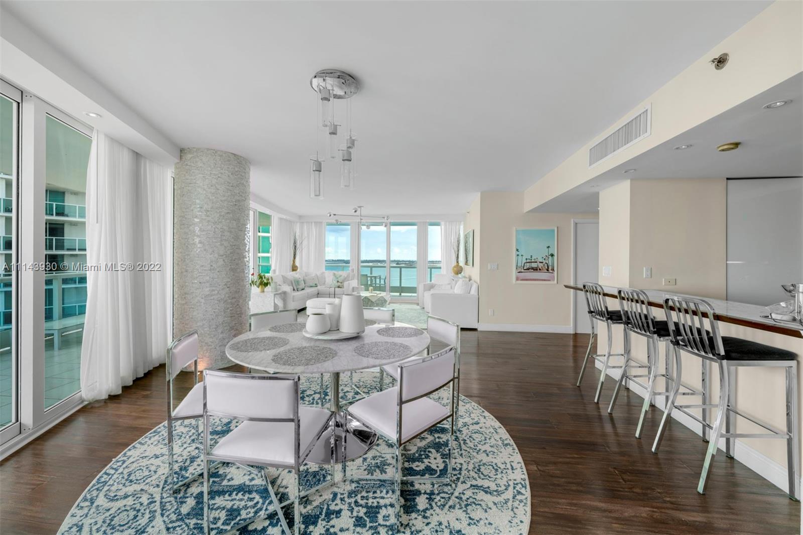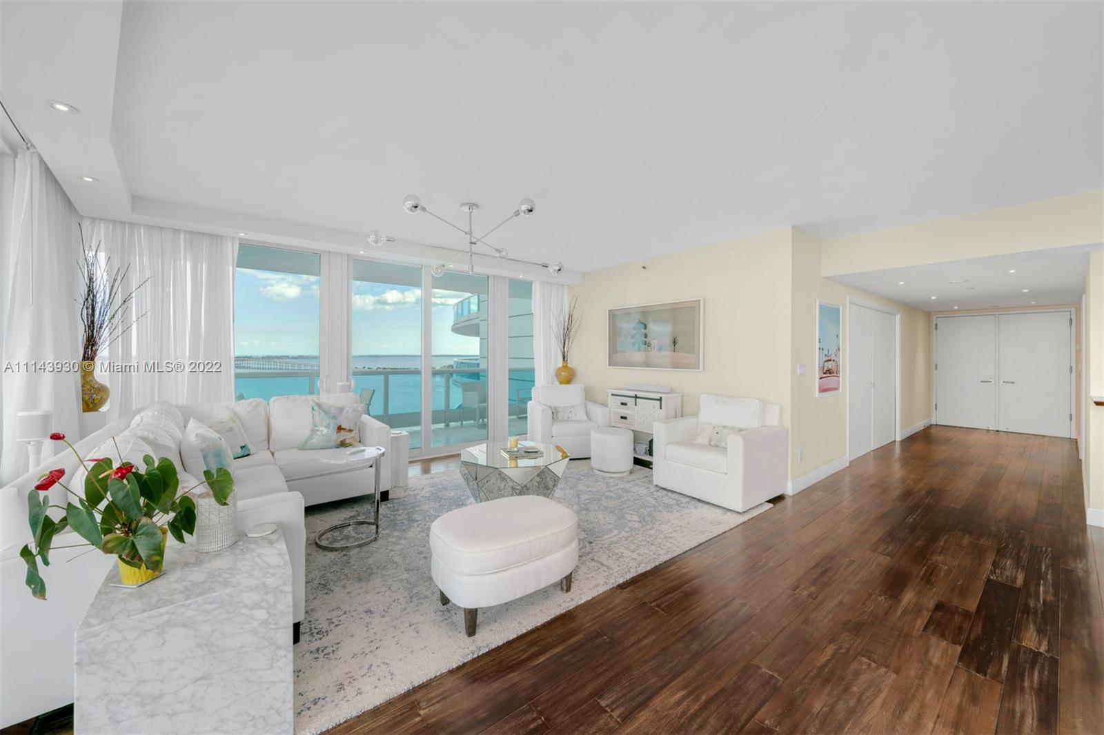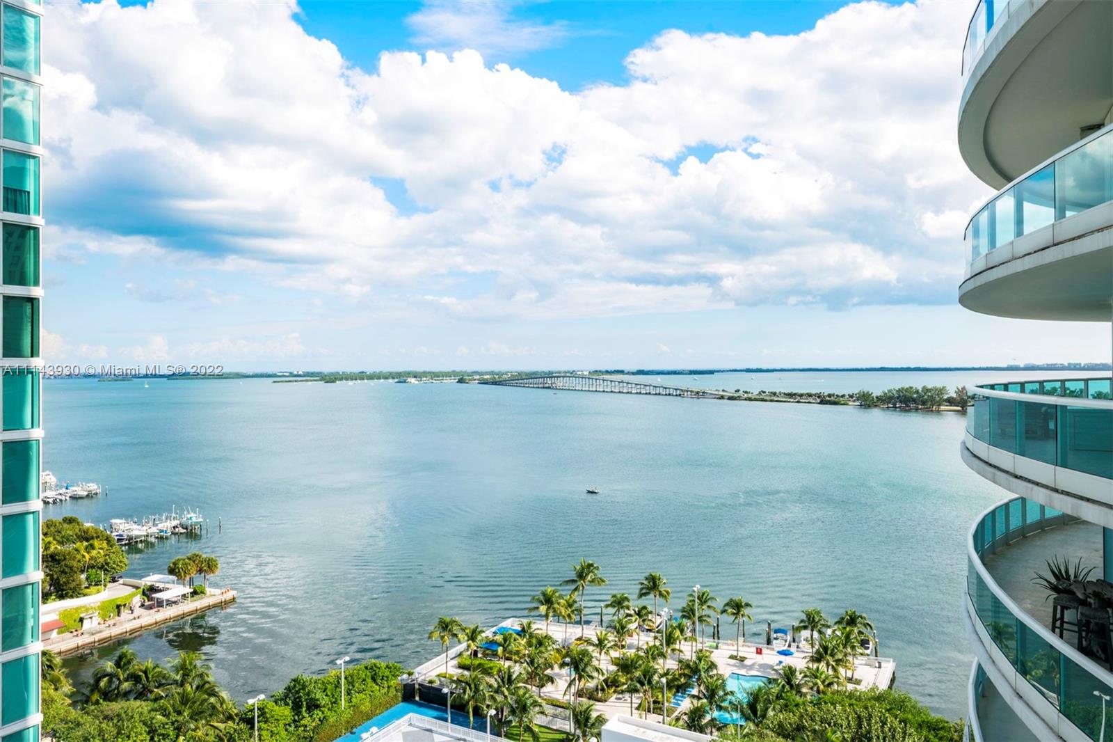This 2 bedroom & 2 bathroom residence offers endless views of Biscayne Bay by day and the Miami skyline by night. Featuring Brazilian chestnut wood floors, a modern kitchen and 1,610 sq ft of living space complemented by a wraparound balcony. The open floor plan flows from living room into the dining space and kitchen. Second bedroom features built-in Murphy bed - easily convertible to a home office. The master suite boasts ample walk-in closets and an en-suite bathroom. The residence includes two parking spaces & a storage unit. Bristol Tower is a guard gated, luxury boutique building with semi-private elevators, 24hr concierge + security, valet parking, convenience store/cafe, tennis, heated pool, playroom, outdoor dining, car wash, electric car charging + latest fitness equipment.