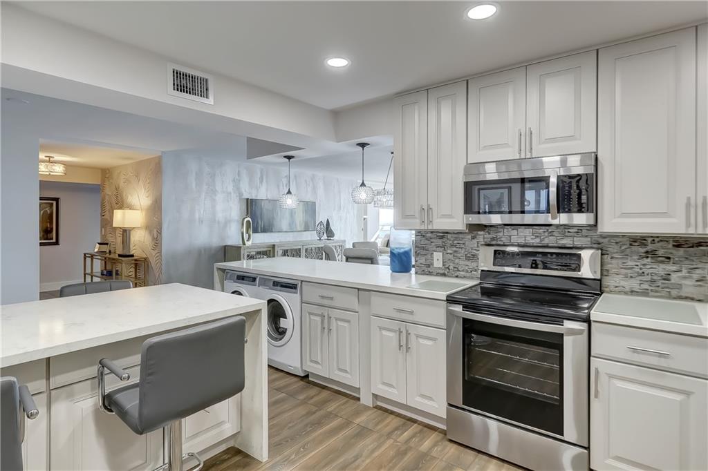 THIS IS READY TO MOVE INTO. GORGEOUS HIGH FLOOR COMPLETELY, AND BEAUTIFULLY REDONE. OPEN LARGE KITCHEN. QUARTZ COUNTER, UPGRADED APPLIANCES, INCLUDING WASHER DRYER. LOTS OF CABINETS, LOTS OF COUNTER SPACE. FABULOUS VIEWS FROM EVERYWHERE. LARGE MASTER BEDROOM HAS DOUBLE FLOOR TO CEILING WINDOWS LOOKING OUT TO OCEAN AND DOWN THE BEACH. BOTH BATHROOMS HAVE BEEN TITALLY REDONE. LARGE FINISHED CLOSETS. EXPENSIVE BLINDS FOR THE WINDOWS AND SLIDING IMPACT GLASS DOORS. NEW SHUTTERS FOR THE BALCONY. BUILDING HAS BEEN UPDATED EXTENSIVELY. THERE IS A NEW GYM RECENTLY FINISHED. 24 HR SECURITY, GARAGE PARKING, SAUNAS, AND SPA LIKE POOL AREA. MOST FURNITURE INCLUDED. BUYER MUST SIGN FIRPTA ADDENDUM.