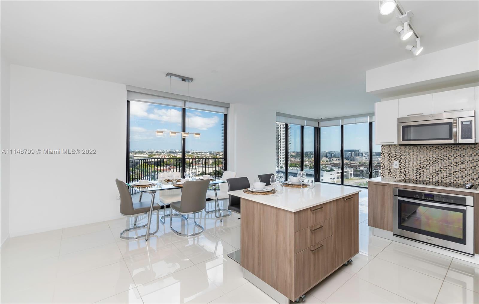 Spectacular Corner view ,2Bed/2Bath in DownTown Doral,Kitchen with quarzt counter and stainless steel appliances,ceramic floors,building has pool, gym and is close by restaurants and public park