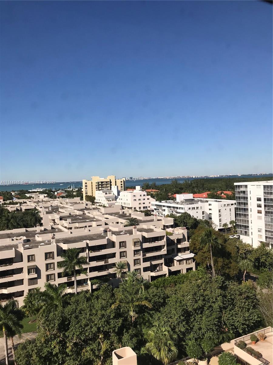 Oversized 1,961 sq ft . 2/2.5 + Den (3rd bedroom possible with large window & 1/2 bath). Split bedroom plan. All tile floors. Formal dining. Separate large laundry room. Large balcony with amazing direct views of Bay, Coconut Grove, Coral Gables, Downtown city lights, pools, gardens, etc. from ALL rooms. Hurricane Shutters, 2 covered/assigned Parking Spaces. Lobby Concierge, Valet. Complex has 6 pools (beachfront/Olympic etc.). Tennis complex, gourmet food store/restaurant, hair salon, children playground, etc. Tenant leaves March 8, 2022. Professional pics coming soon.