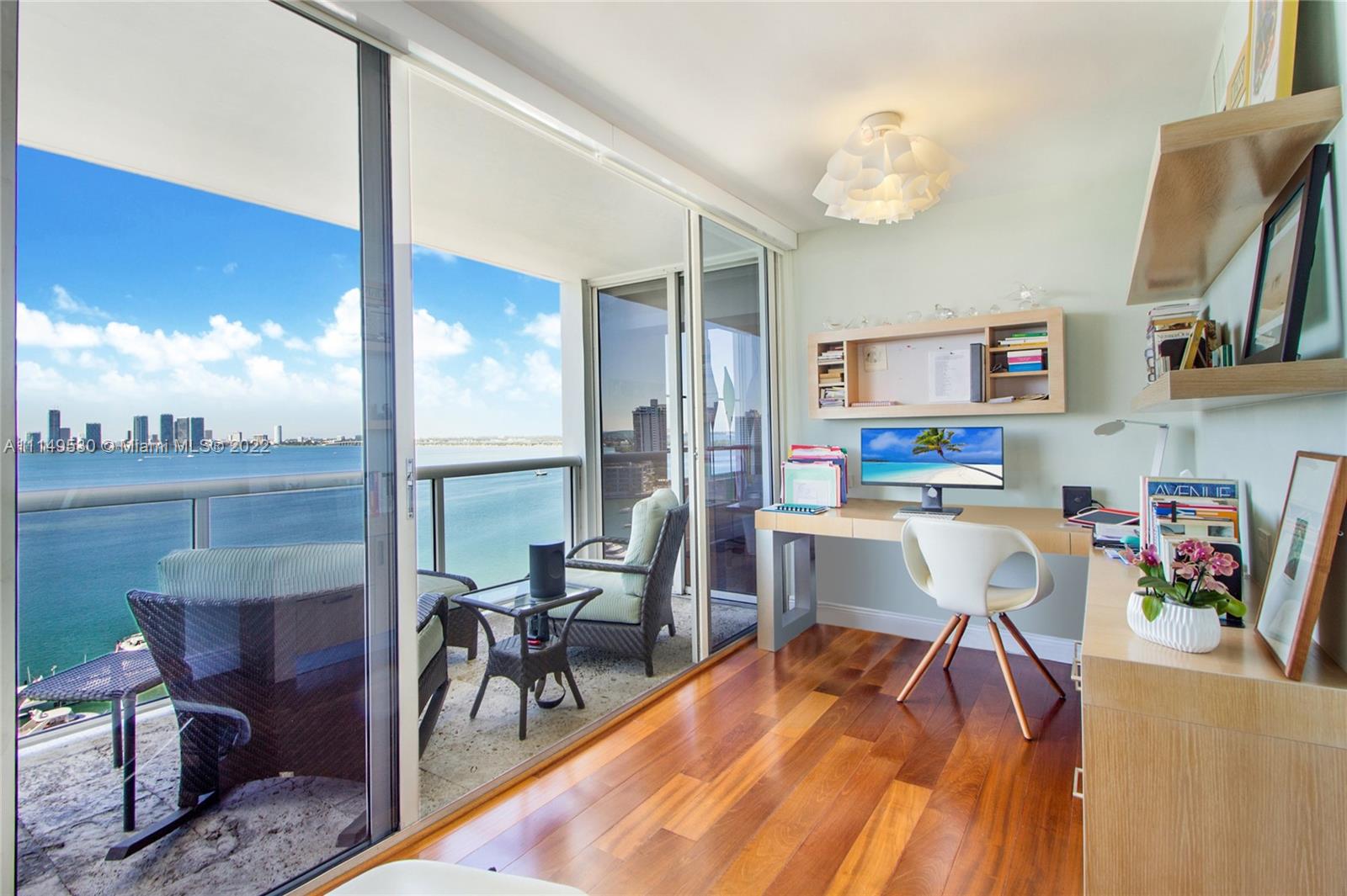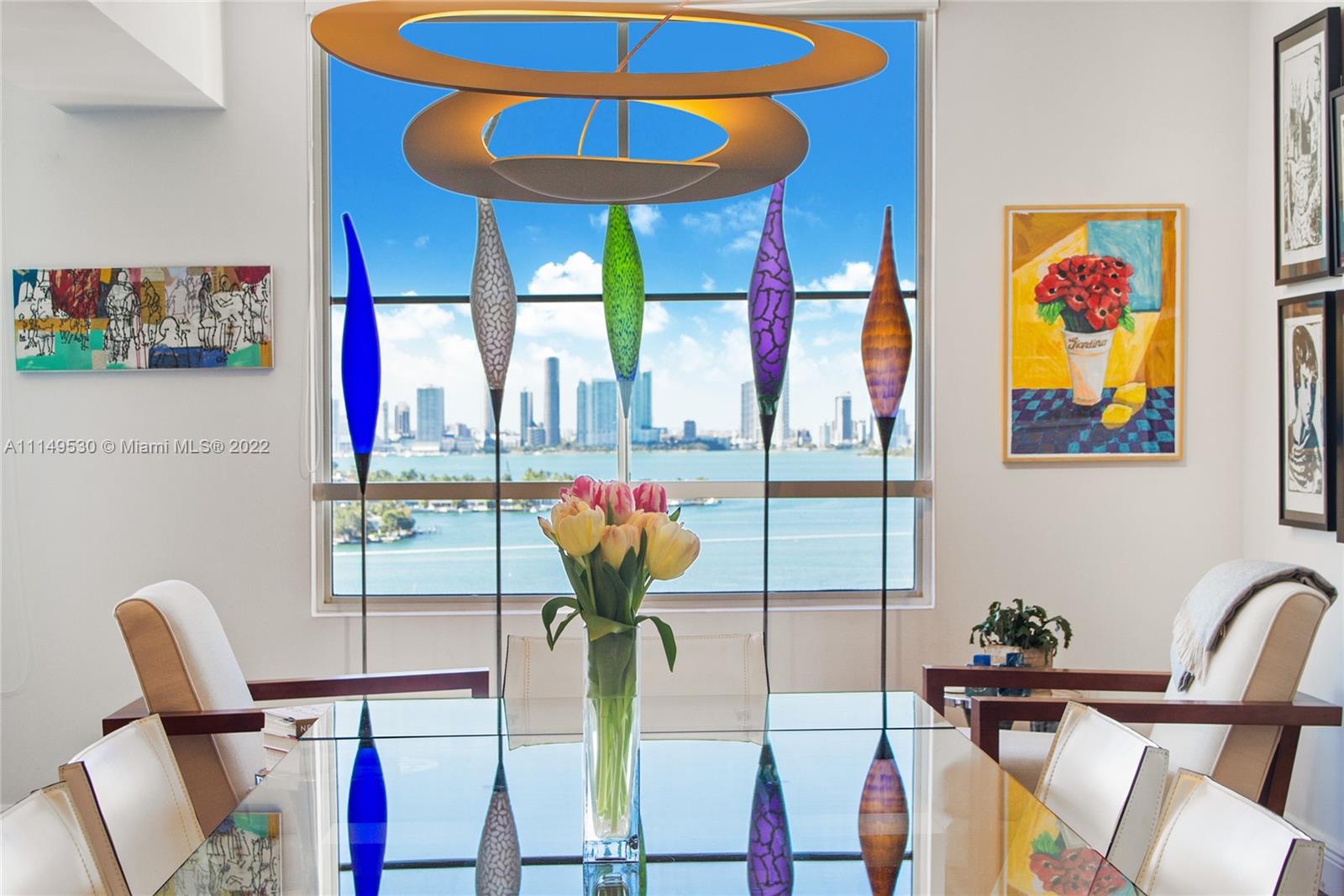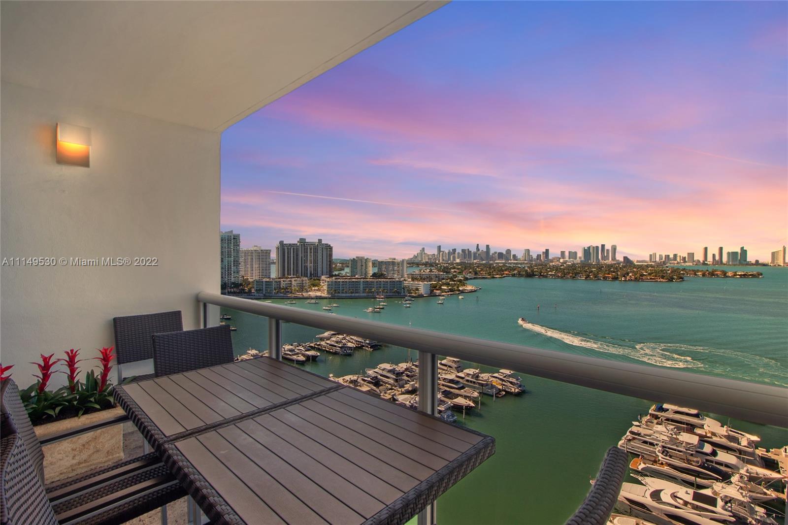 Spectacular custom combined two condos with panoramic views of Biscayne Bay, Sunset Islands and Miami’s skyline, rarely available in Sunset Harbour North condo tower. Remodeled Sunset Harbor North corner residence with 2,350sf split floor plan featuring three large bedrooms + Den with three balconies. Interior features include wood flooring, custom kitchen with quartz countertops, custom cabinetry & built-ins, w/sound system throughout. Full-service building with full amenities & two swimming pools. Located in one of the most desirable neighborhoods in Miami Beach, with a wide range of shopping and dining options at your doorstep. Condo comes with two deeded parking spaces