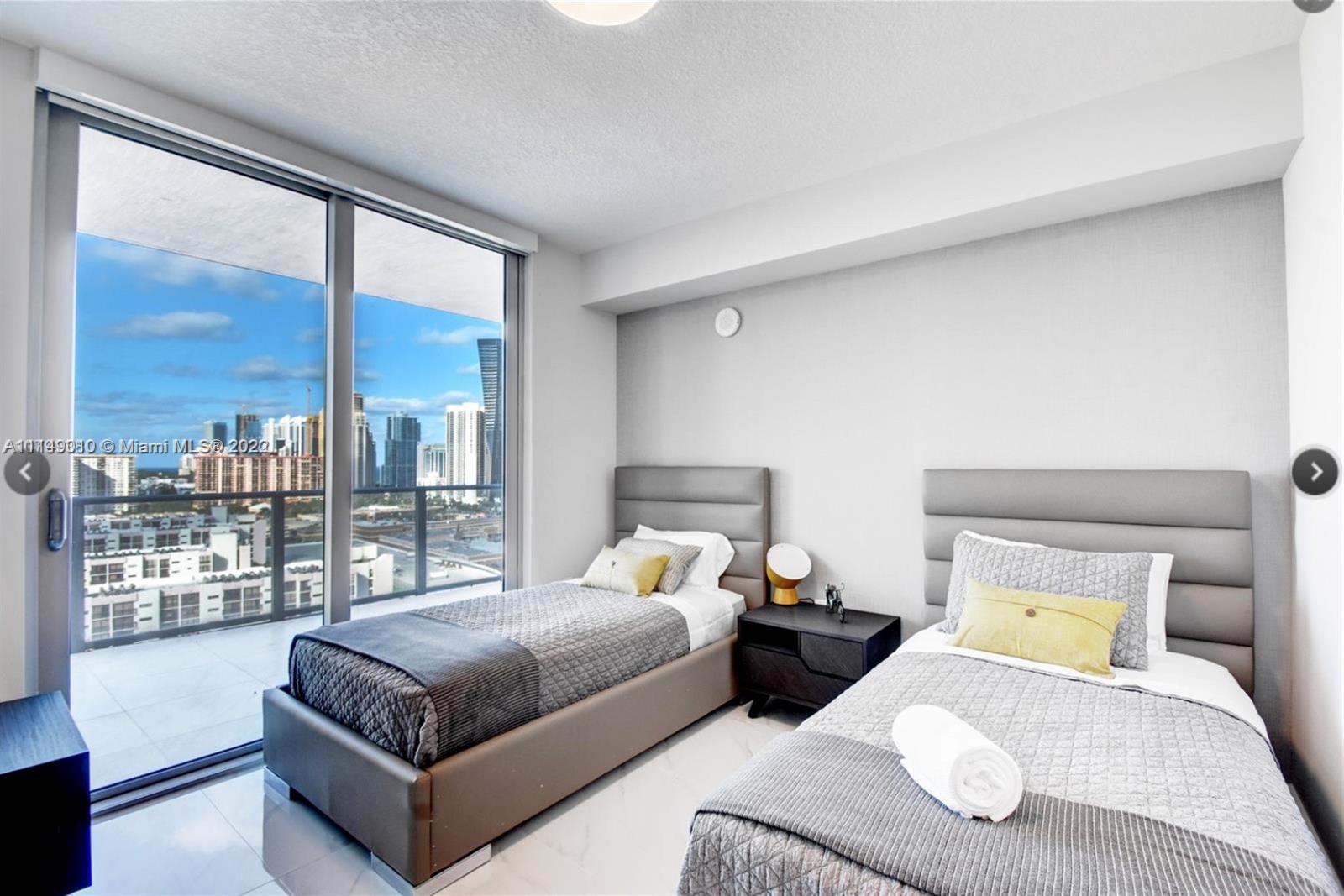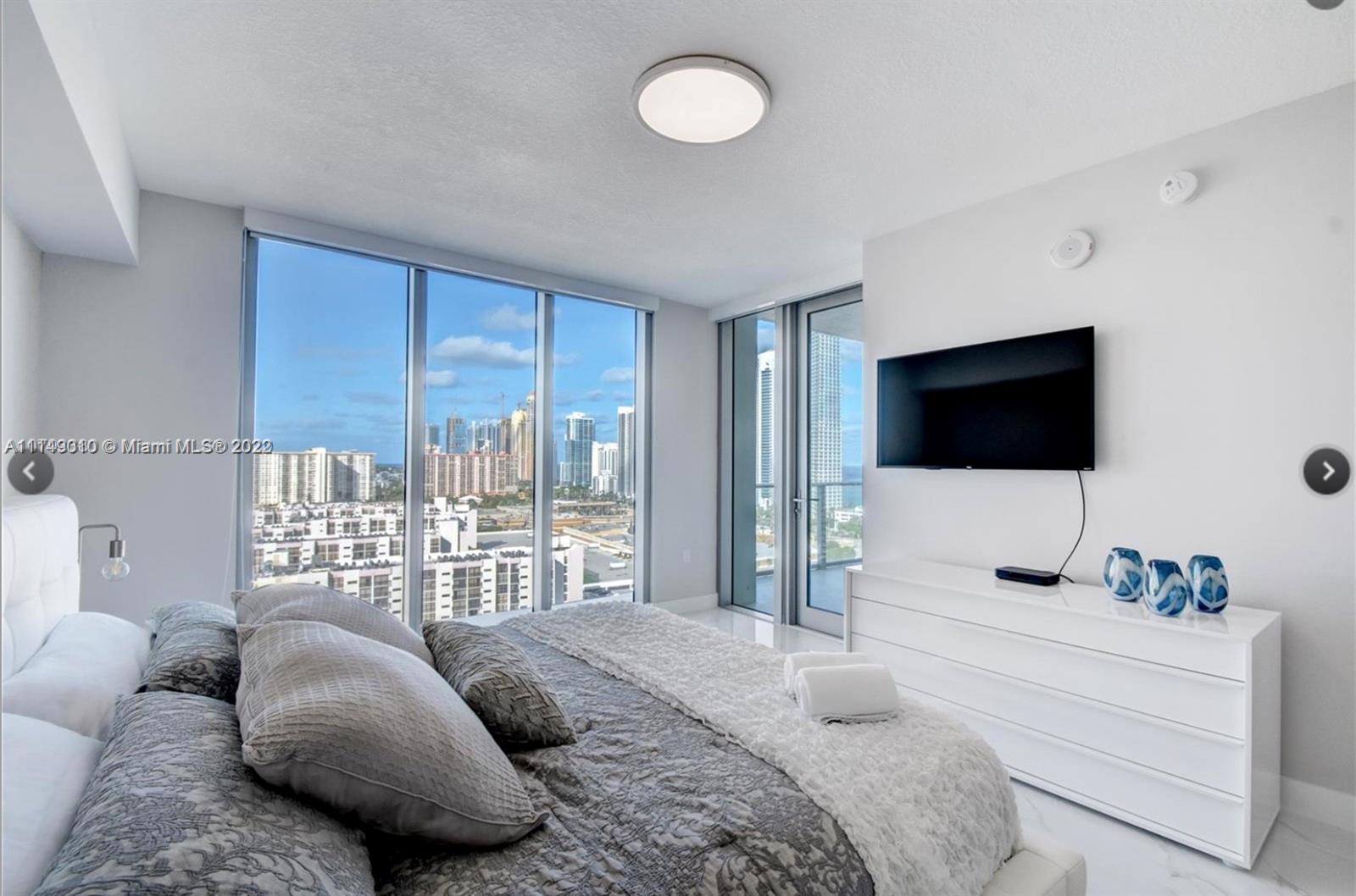 Completely furnished, awesome views from this high floor to the city, ocean, and Intracoastal. Porcelain floor through out of the unit, blinds in the bedrooms and living, curtains; kitchen with stainless steel appliances, wall oven, coffee machine; bedrooms with cabinets on closets; the amenities include pools, great exercise rooms, jacuzzi’s. Walking distance to the beach, close to Bal Harbour shops, Aventura Mall, restaurants and stores. Best rated school. Great opportunity.