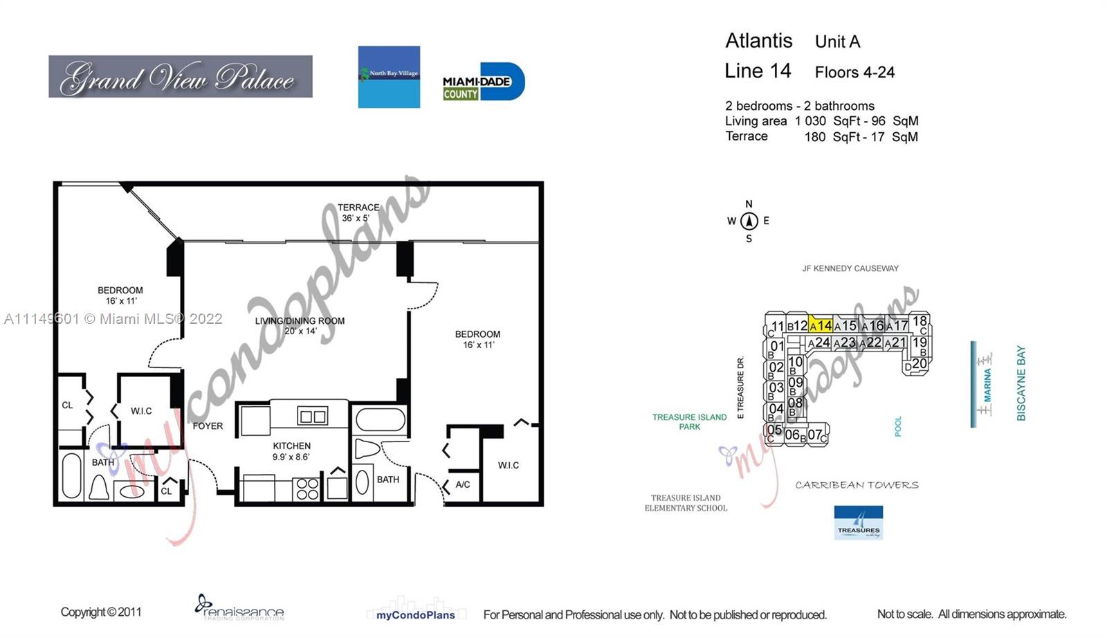 Amazing water/city views from this 19th floor unit in this waterfront condo, Grandview Palace, North Bay Village, next door to Miami Beach. Spacious open living area, split bedrooms, basically having 2 master beds and each has their own private bath. Building amenities include 24 hours security, Olympic sized swimming pool, plus more and resort style living. Perfect location, minutes to the beach, Wynwood, Miami International Airport and other entertainment areas of Miami. Marina in the premises. Unit is rented, please do not disturb tenants, contact agent for more information.