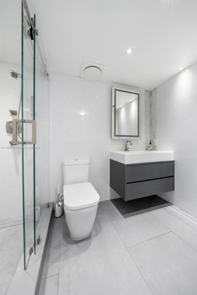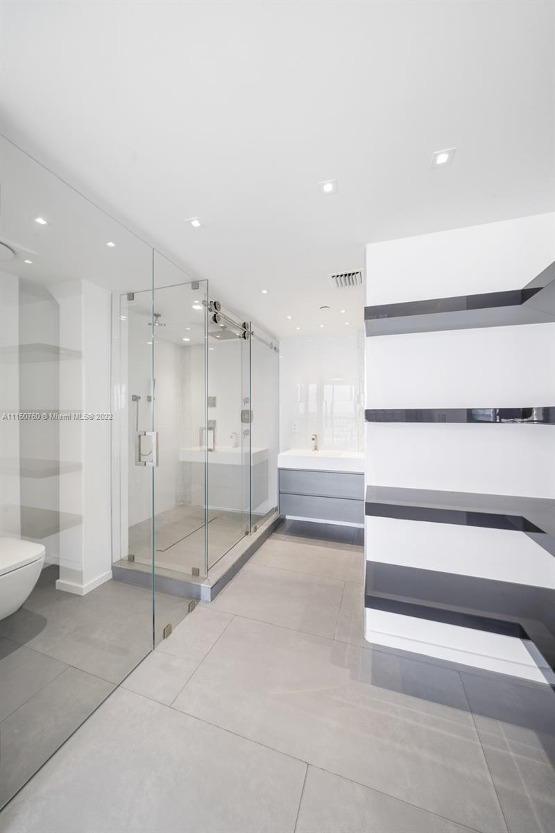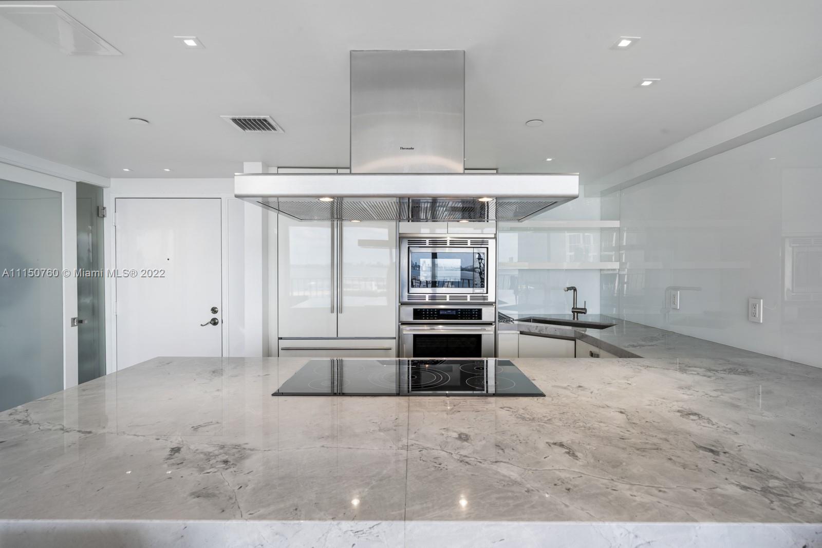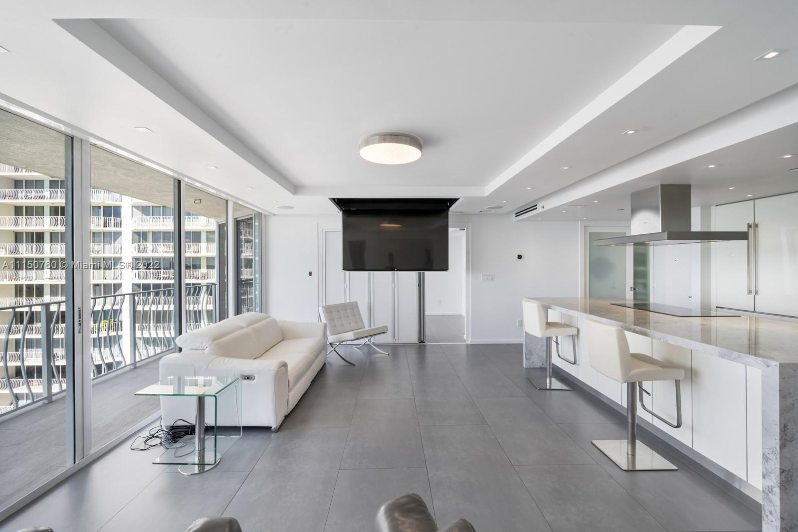 Spectacular one of a kind 2 bed 2 baths with panoramic waterfront views! Flow through this open concept condo that's been totally upgraded with no expense spared. High end Italian cabinetry includes top of the line Thermador appliances, including dishwasher, and wine cooler. Enjoy the huge oversized 6-person island which features a quartz waterfall and a glass 5 burner stove top overlooking the bay views. Bosch washer and dryer, 24x48 slate flooring, Floating 75-inch tv drops down from ceiling, automatic window shades and blackout curtains. Many amenities and 2 upgraded spacious parking spaces included!