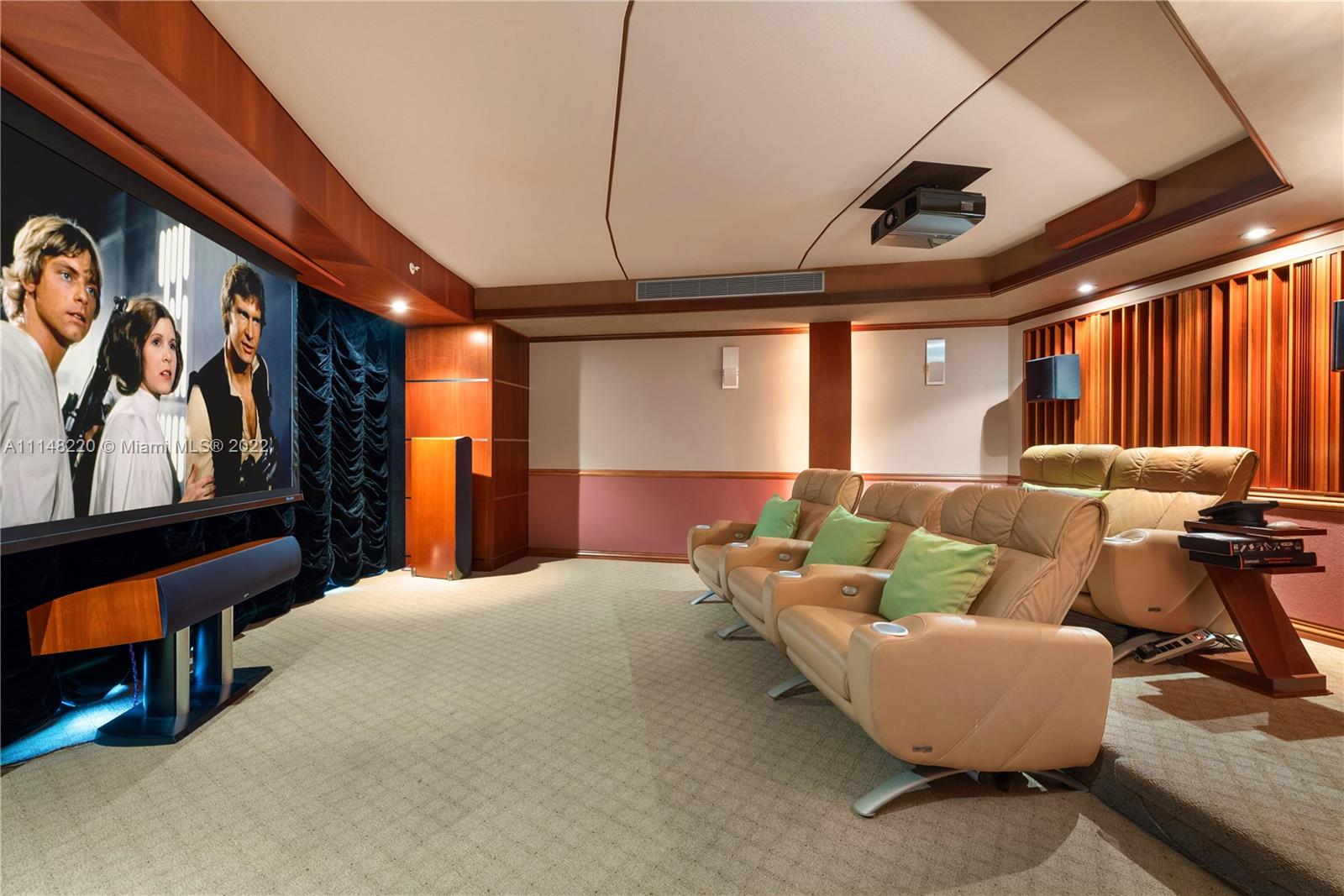 This home in the sky at the exclusive Santa Maria building features 5,733 sqft + 1742 sqft of expansive terraces with unobstructed views of the Ocean, Bay and Miami Skyline. Flow-through 2 story unit features a private foyer, soaring 20ft ceilings, solid mahogany doors, and electric shutters. This home has a custom sound proof theater and all blackout electric blinds. Amenities include state of the art fitness center, tennis court, pool, spa & Storage.