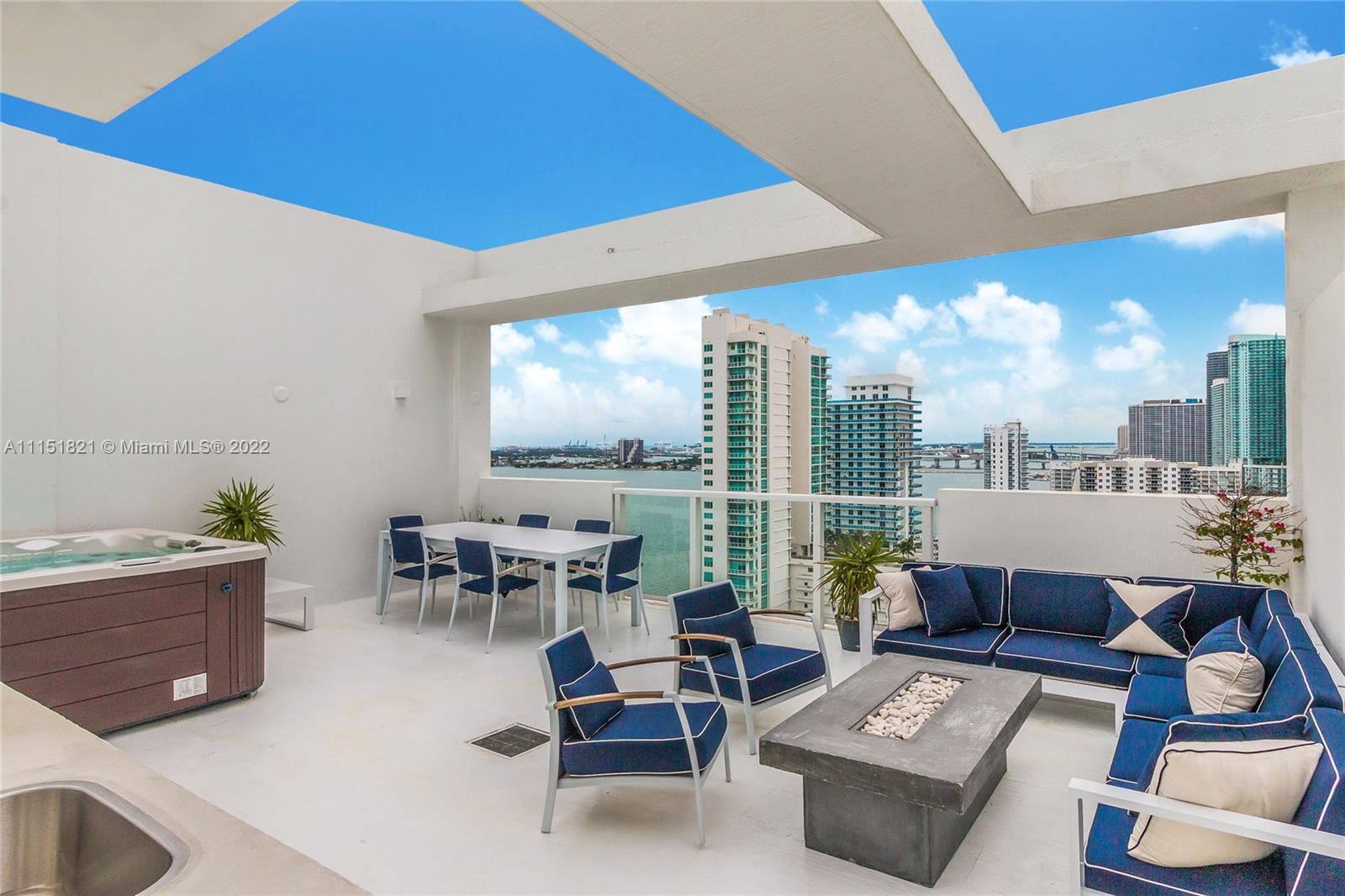 Don’t miss this incredible opportunity to own a luxuriously appointed, designer-furnished, two-bed/two-bath residence with a private roof-top terrace, located in the LEED-certified CRIMSON building in Miami’s hot Edgewater district. This stunning, turnkey, fully furnished SW corner unit offers high-end appliances and luxury finishes. South and west facing balconies provide beautiful views of Biscayne Bay and the Miami skyline. Fully-equipped gourmet kitchen with quartz countertops and Bosch appliances. The sale includes a furnished roof-top terrace valued at $150,000 with incredible views of the bay, grill, and Jacuzzi. Assigned parking with private Tesla charging station.