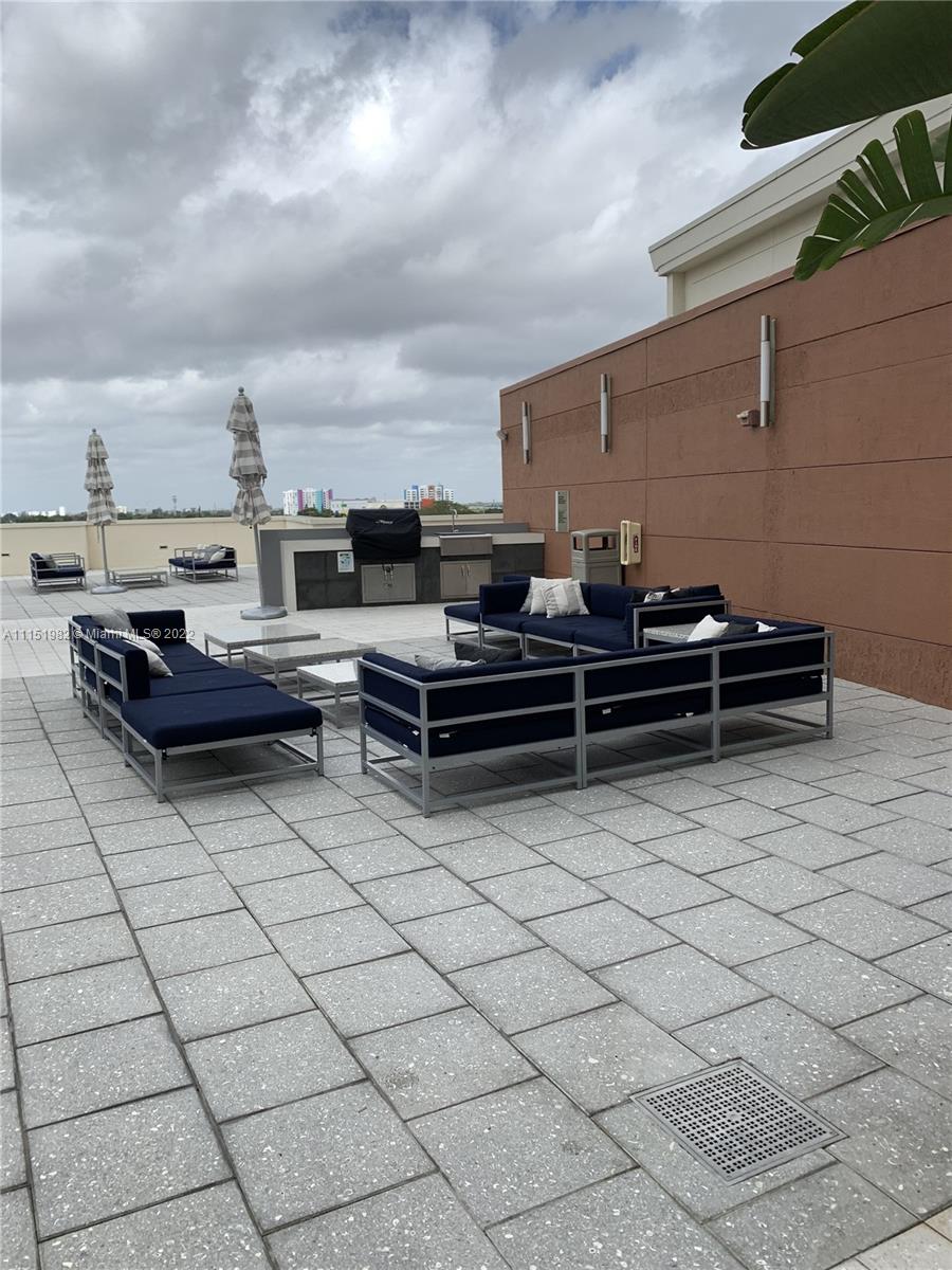 Modern and spacious apartment at Midblock condo. Industrial details, kitchen w/ stainless steel appliances, and stone counter tops. 10ft ceilings with exposed concrete and spacious private terrace with an open view. Building has 24-Hour concierge and security, chic modern lobby, covered gated parking, rooftop swimming pool, state of the art fitness center, BBQ, and mini golf. Ground level restaurants and shops. Short term & Airbnb are allowed.