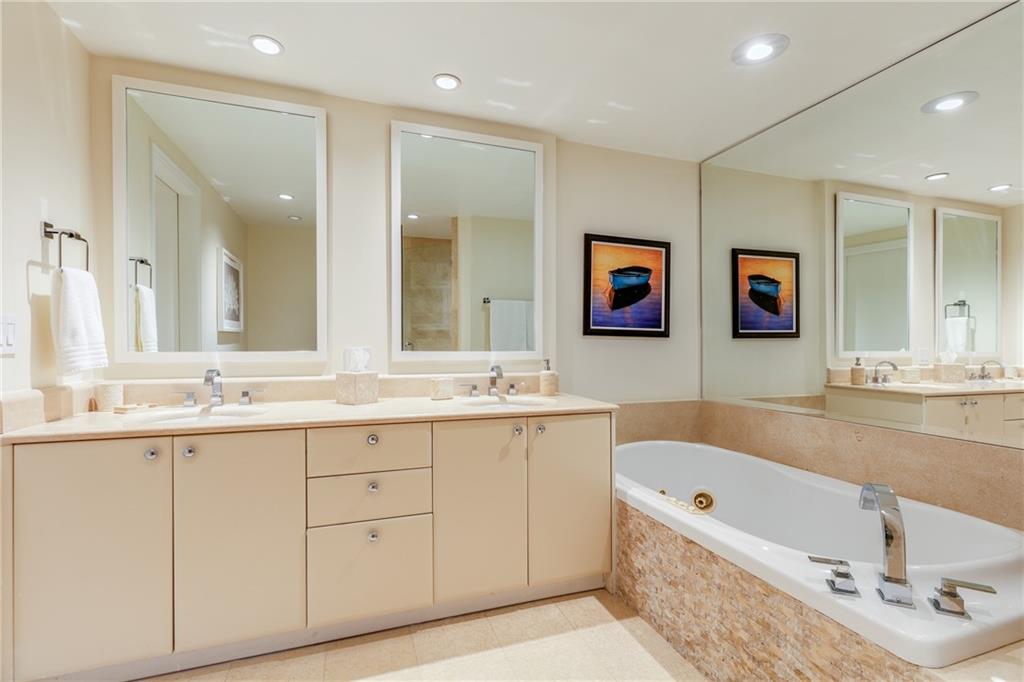Gorgeous designer decorated Portofino model home at The Palms! Stunning unobstructed ocean views abound from the Great Room and Master Bedroom with spectacular Intracoastal waterway views from the 2nd Bedroom and Den/3rd bedroom. This immaculate condo is move in ready for this season! Located at The Palms w/24 hr guard gated security, chair & towel service on the beach & pool, Club room, billiard room, 2 pools & state of the art gym.