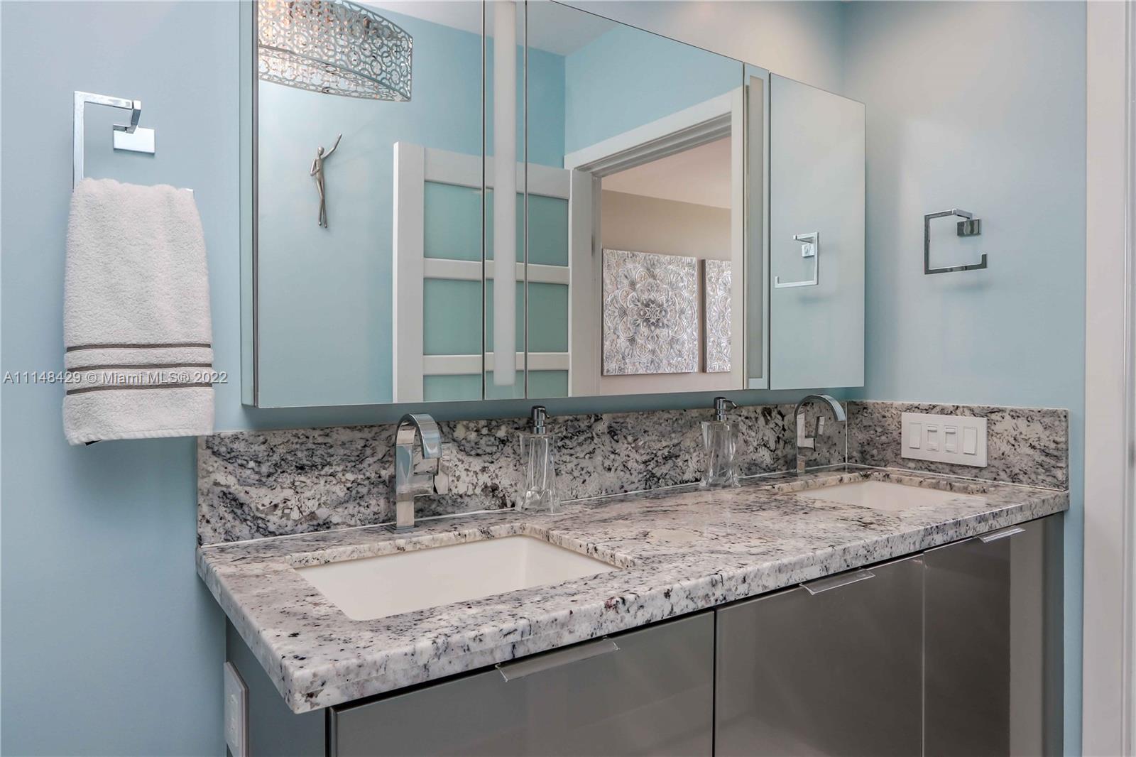 Wake up to the sound of ocean surf as you watch the sunrise over the well-groomed beaches of the Atlantic Ocean. Enjoy a sunset cocktail on the wrap-around 270 degree balcony as you watch the bright lights of Miami’s skyline reflected in the Intercoastal waters. Designer updates abound throughout this corner unit with unobstructed views in the highest building in North Beach, within walking distance of restaurants and shops, and full of modern and updated amenities. Valuable 2/2 split bed/bath layout includes floor to ceiling power shades, completely remodeled bathrooms, and master custom closet. Amenities include direct access to the popular beach walk, beach attendant, heated pool and spa, fingertip security and seventh floor attended gym with ocean views.
