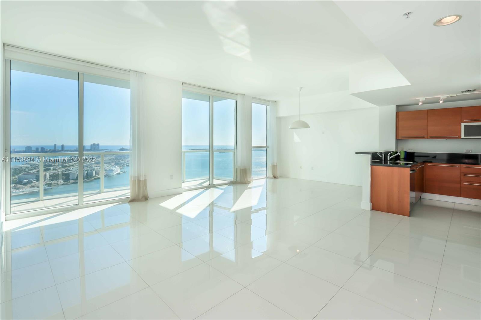 Stunning high-floor 2 bedroom at Vizcayne South with direct east facing water views. This 1,293 square foot apartment has white porcelain tile floors throughout, two balconies, endless Biscayne bay and ocean views, floor to ceiling windows and tons of natural light all located in the heart of downtown Miami. Vizcayne has world class amenities including four swimming pools, a Jacuzzi, fitness center, yoga room, his and hers sauna and steam-room, 24 hour valet and security and more.