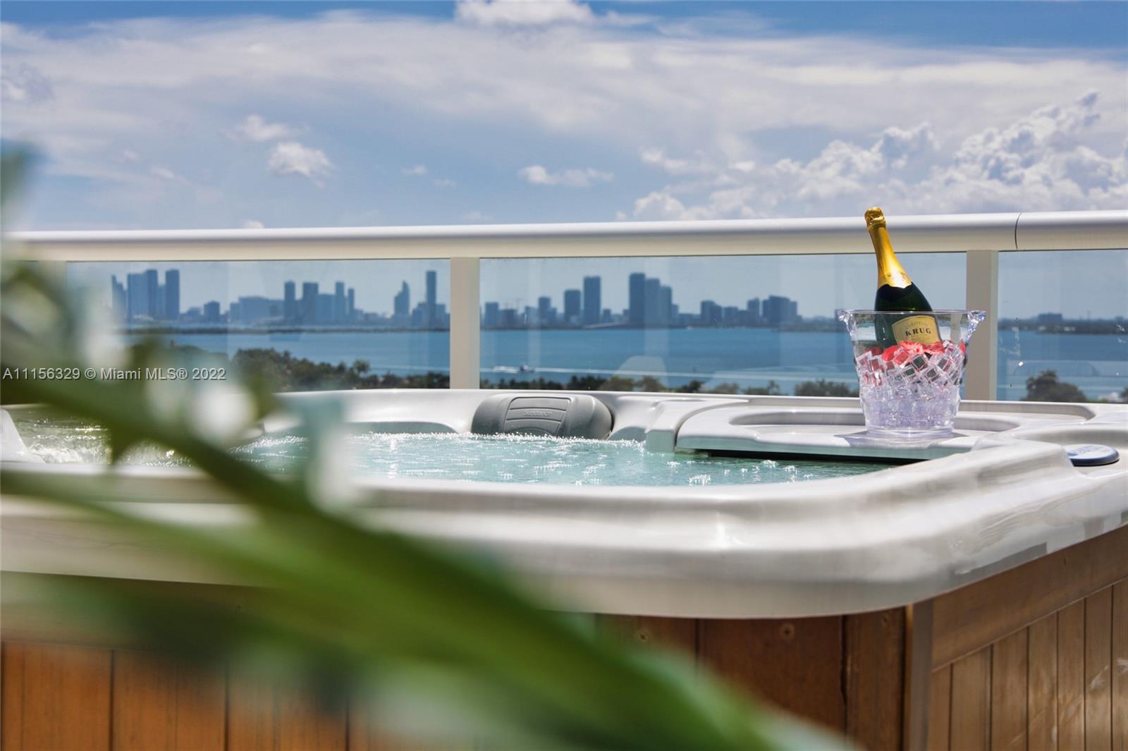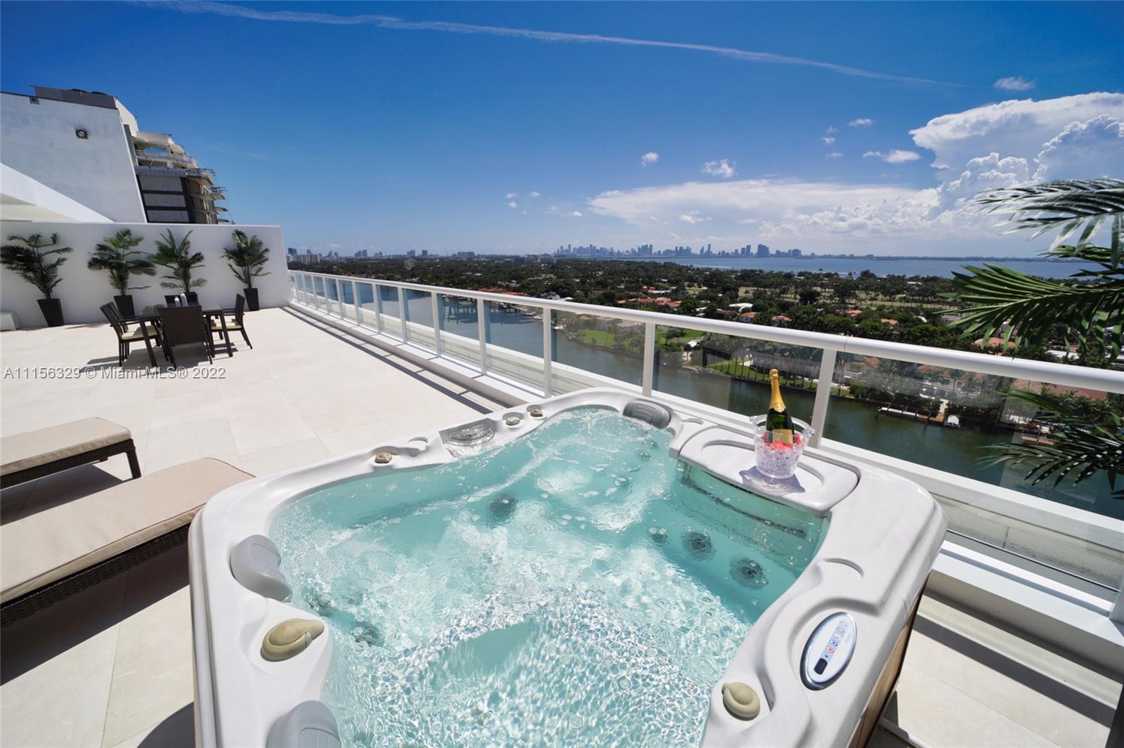 THIS LUXURY 3 BEDROOMS, 3 FULL BATHROOMS PENTHOUSE IS DESIGNED FOR YOU. 2,100 SQUARE FEET UNDER A/C & AND ADDITIONAL 1,200 SQUARE FEET OF TERRACE W/ GORGEOUS VIEWS OF THE INTRA-COASTAL, BISCAYNE BAY, LA GORCE GOLF COURSE, & DOWNTOWN MIAMI AND THE SUNSET. AMAZING JACUZZI ON THE TERRACE. THIS UNIQUE PENTHOUSE INCLUDES A POOL-SIDE CABANA W/DRESSING ROOM & FULL BATH. THE RESIDENCE COMES FULLY FURNISHED, FEATURING ITALIAN SNAIDERO CHERRY WOOD KITCHEN CABINETRY, MIELE APPLIANCE. CHERRY WOOD FLOORS. MARBLE BATHROOMS. LAUNDRY ROOM WITH SINK. PRIVATE STORAGE ON THE APARTMENT FLOOR. PRIVATE WINE CELLAR. 3 PARKING SPACES ASSIGNED. BUILDING HAS BEEN COMPLETELY RENOVATED WITH NEW GYM, POOL AREA, ELEVATORS, LOBBY,HEATED POOL, RESTAURANT.FULLY FURNISHED. BUILDING HAS PRIVATE MARINA. BOATERS DREAM.