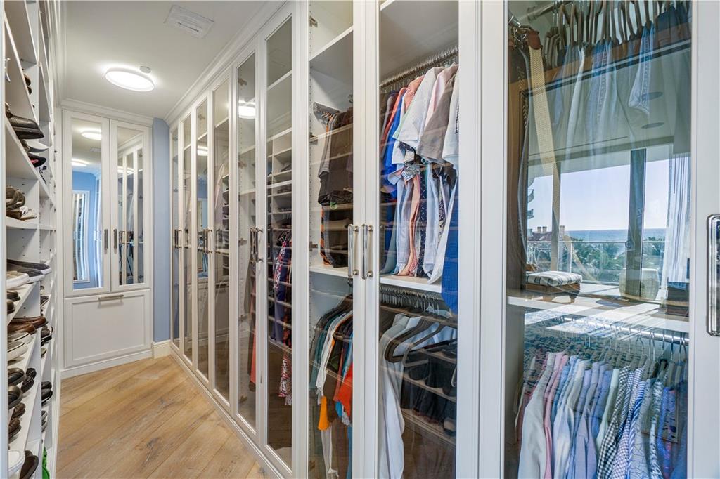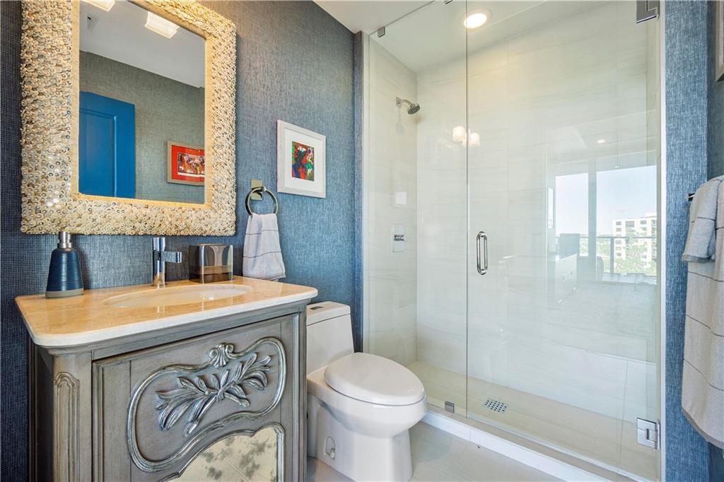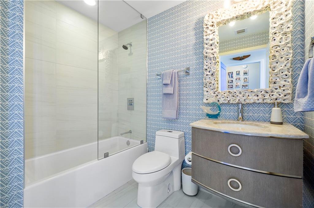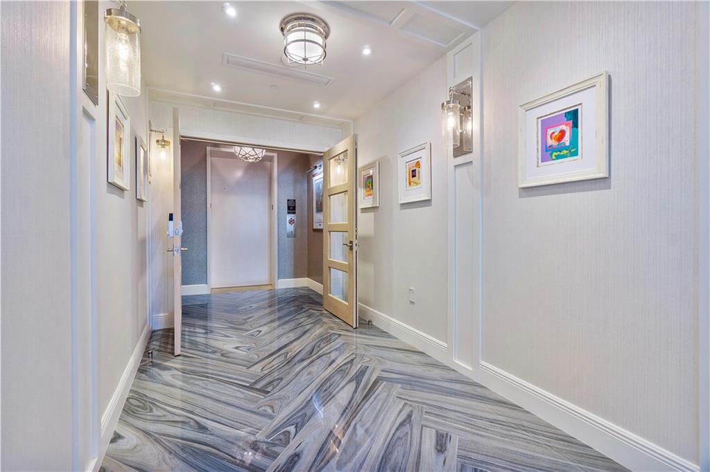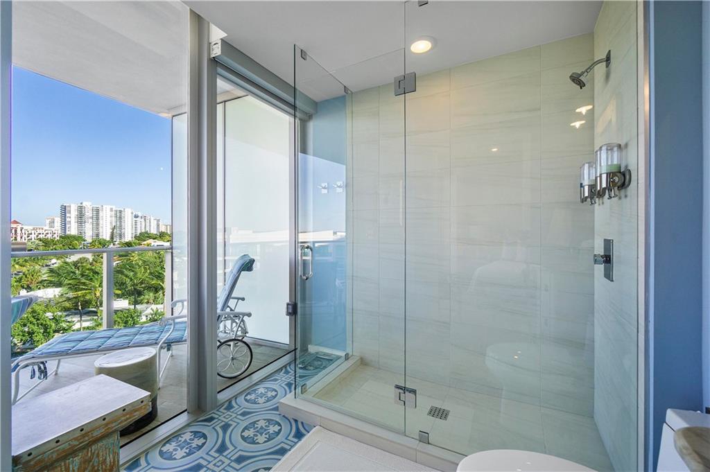 This exquisite corner flow-through floor plan stretches E to W providing direct sunrise ocean views & sunset city views w/an expansive terrace on each end. Enter through a private foyer & capture the stunning blue porcelain herringbone flooring w/a custom art gallery & gorgeous octagonal custom ceiling woodwork in the dining room showcasing the chandelier. This 4 bed (1 was used to expand the media room) & 5 bath residence includes a custom built-in office, a second master built-in walk-in closet w/quartz countertops, & a Den! The unit features a hand-painted tile powder room along w/custom millwork & natural oak flooring throughout. An upgraded Control 4 system is installed & includes complete control of lights, locking, blinds (day/blackout), & security cameras all w/Alexa!