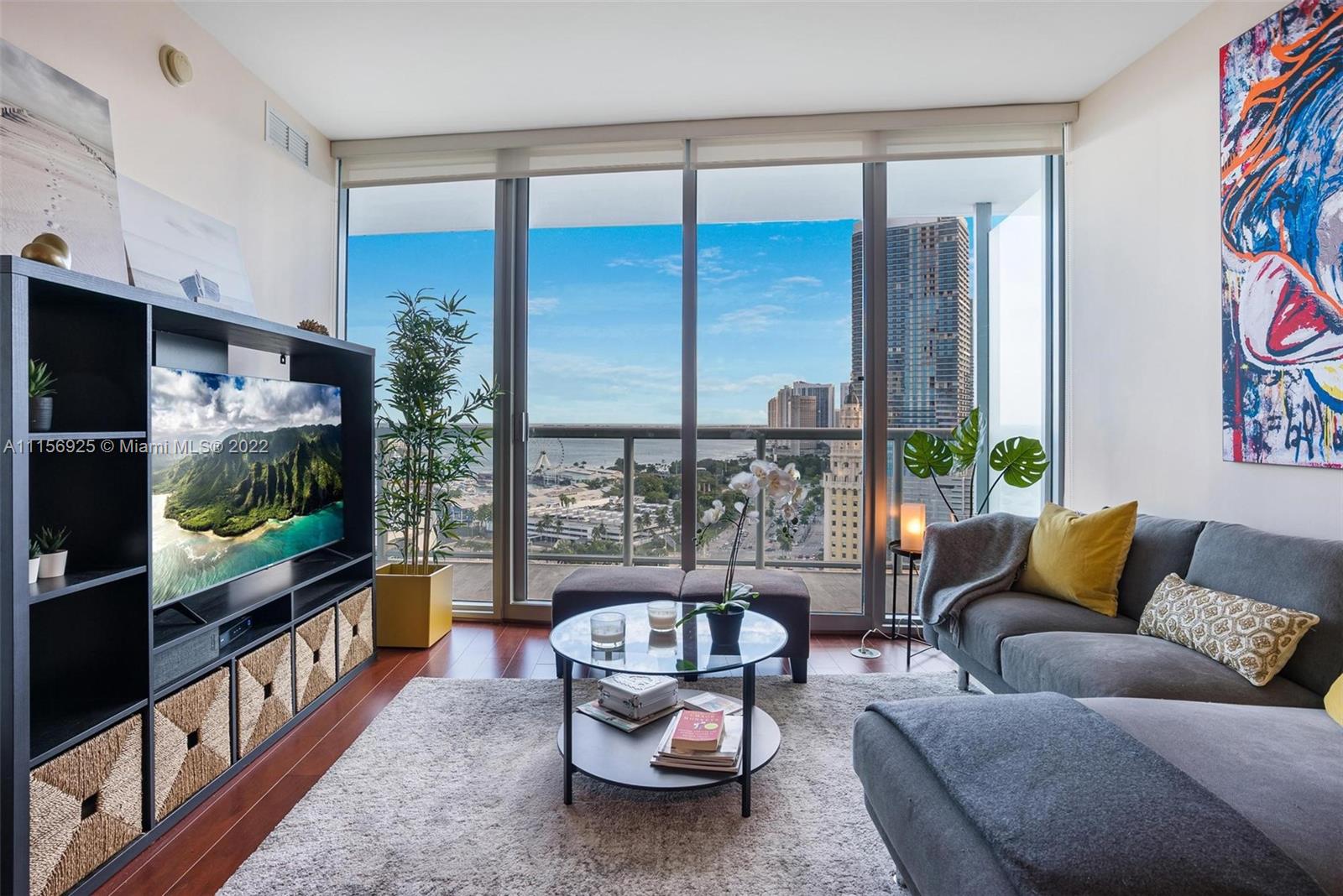 Spectacular 1 Bedroom and 1.5 Bath unit at the MarinaBlue. Enjoy stunning breathtaking panoramic views of Biscayne Bay, Ocean and the Downtown Miami skyline. Unit offers floor to ceiling impact windows with marble and hardwood floors, large balcony, open kitchen with stainless steel appliances and granite countertops. Luxury amenities include 2 pools, Hot Tub, Fitness Center, volleyball, business center, convenience market and more. Just minutes from South Beach, Adrienne Arsht Center, Perez Museum, Wynwood, Design District, Brickell and Midtown. Metro-mover conveniently close. Extra storage on 9th floor. Downtown Miami Living at its finest.