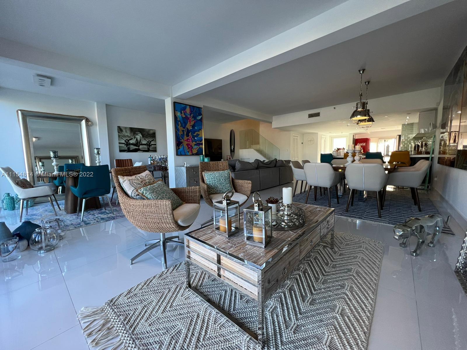 RARE OPPORTUNITY in the desired PoincianaIsland! Private Island 24-hour guard gated waterfront community. Recently upgraded custom two-story Marina level unit with back facing north. Gorgeous white porcelain tile floors throughout, white marble staircase and laminate wood in the bedrooms. White expanded kitchen with stainless steel appliances. Master suite overlooking water with walk-in closet and large master bathroom with separate SPA and shower. Sliding doors with automatic shades open to large marble patio to boat dock space behind unit. Great amenities - 4 tennis courts, basketball court, 2 heated pools, kids play area. Walk to the beach just across Collins Ave!! MUST SEE!!