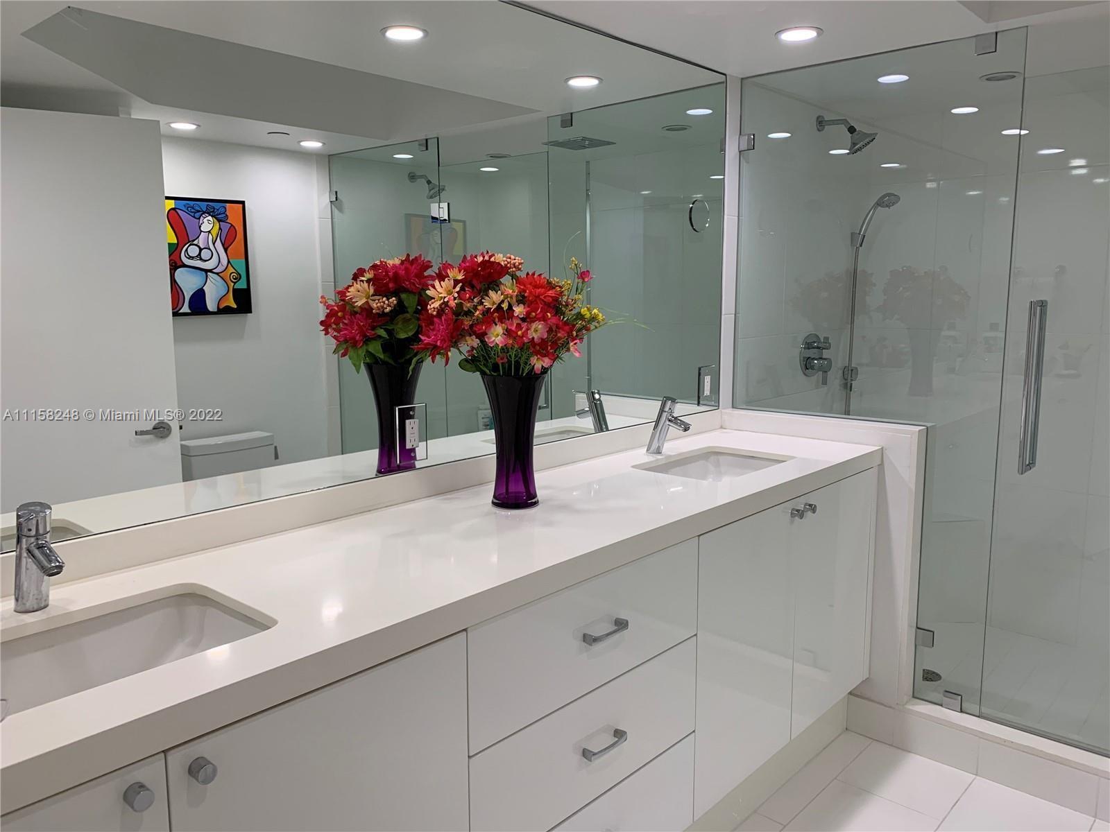 This Penthouse is currently Tenant occupied through August 7, 2022. This magnificent property has extra high ceilings with creme marble floors throughout. Large 1 bedroom plus a separate private den for occasional overnight guests (like a 2nd bedroom) with 2 full bathrooms. Exquisitely updated with huge on-suite primary bedroom wing for ultimate privacy with extra large walk-in closet and beautiful master bathroom. Breathtaking Ocean, Intraoastal and Miami skyline views from every room. Oceania lifestyle includes private, full service beach club with a variety of options including several classes a day at our health club. Oceania Club has wonderful Spa, Oceanfront dining (inside or outside) Gym, indoor racquetball and basketball, plus Tennis courts. Boat slip also currently available.