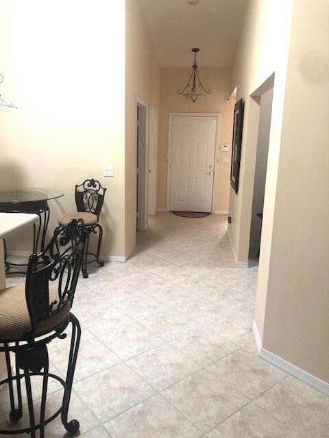 55+ community- Villa in a resort style community, with beautiful lake views from the living room, master bedroom and closed in patio. Features: 2 bedrooms, 2 bathrooms, Den, sliders out to the closed in patio area with a door & windows. Laundry room with entry also into the garage. Full size washer & dryer, Kitchen with pantry. Ceiling fans, accordion shutters, new garbage disposal, a/c replaced 7/2011 and in 2018 UV light installed for a/c. Roof repair done and skylights resealed 2021. Alarm system installed with key pad. Home has custom window treatments & floor safe. Complete shutters, tile at a diagonal selling furnished.