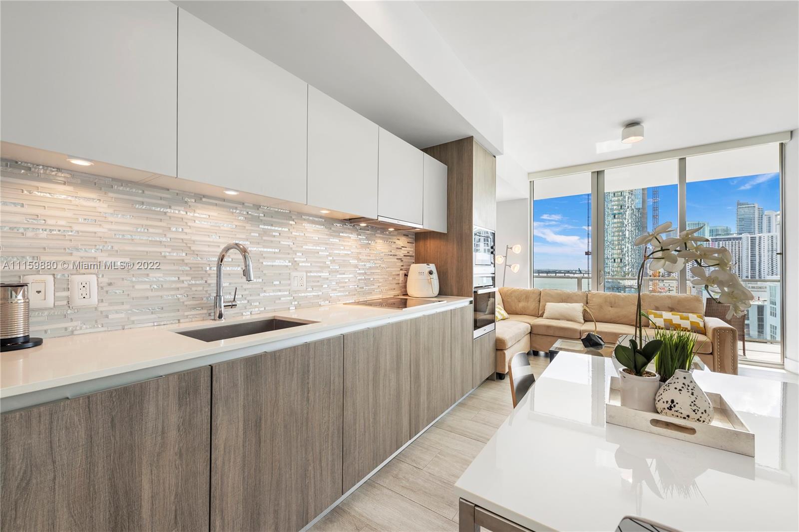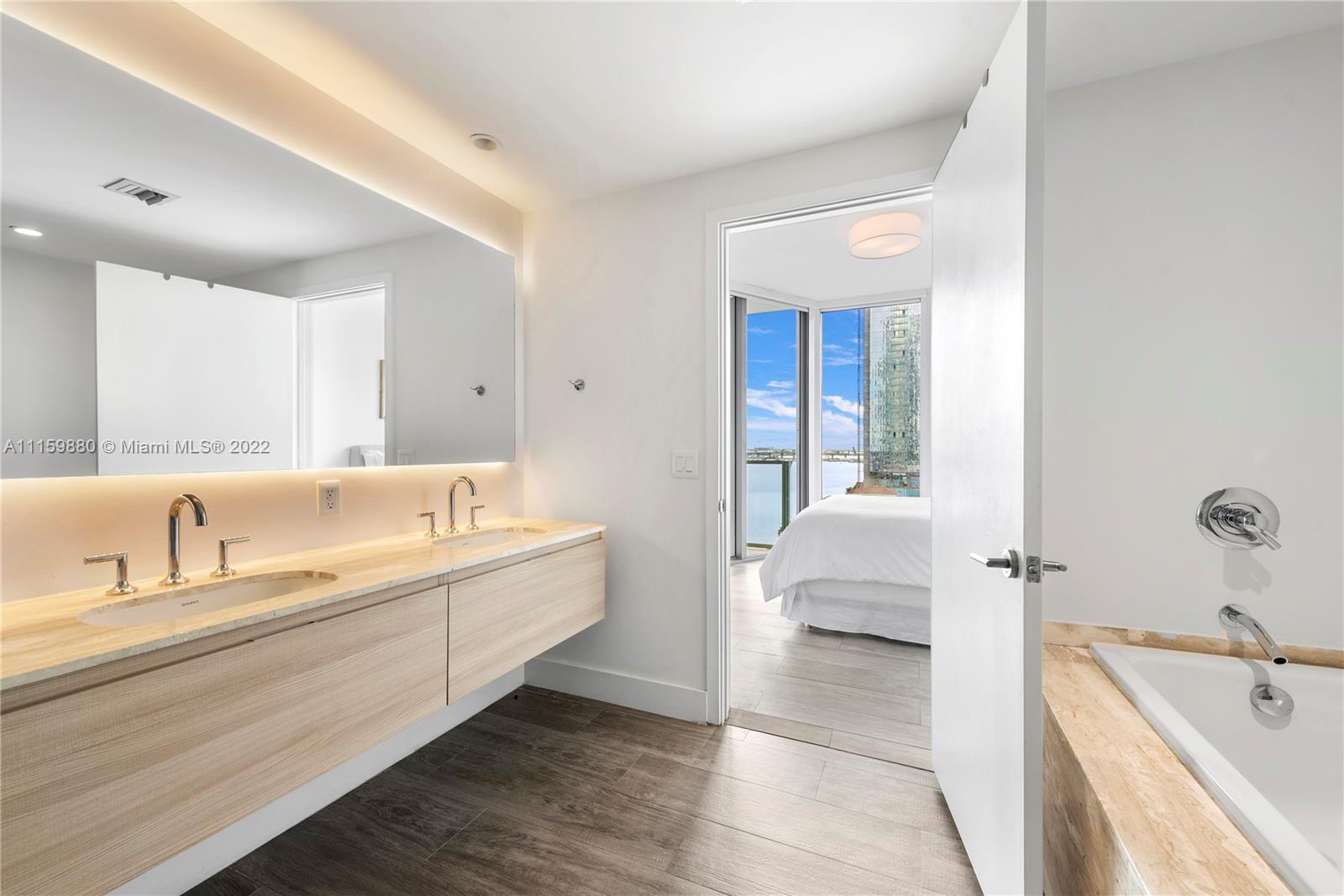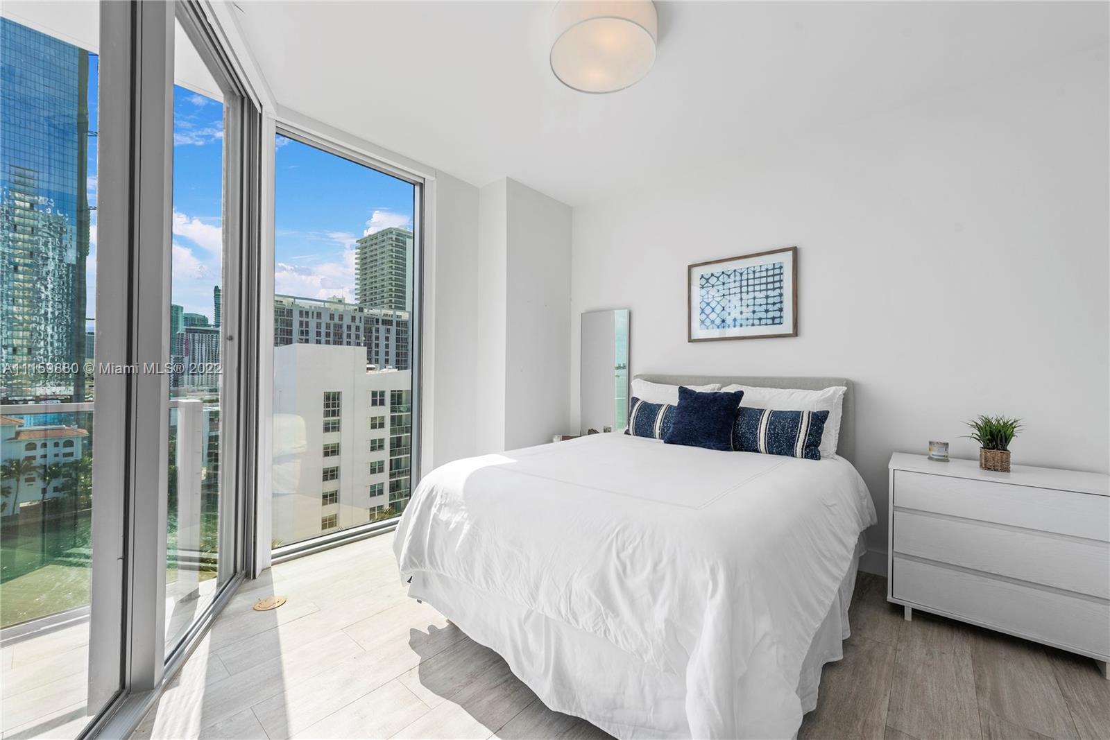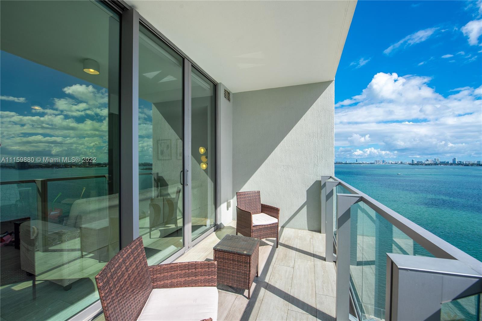 Gorgeously polished 2 BD/2 BA residence (originally 1 BD+den, den converted to 2nd BD) in East Edgewater boasting unobstructed skyline & bay views throughout! Located at Biscayne Beach, a newer construction, luxurious high rise building. This residence has floor-to-ceiling impact windows, a private balcony w/ spectacular views, top-of-the-line Miele appliances, Snaidero cabinetry, spacious living area, open & bright primary suite, primary bath w/ separate tub & shower, dual sinks, & cove lighting, & full sized washer/dryer in the unit! Resort style amenities include: secluded pool deck, beach club w/ towel services & private cabanas, 2 pools, sauna, summer kitchen w/lounge seating areas, 2 tennis courts, fitness center, steam room, blow-dry bar, massage rooms, dog park, restaurant, & more!