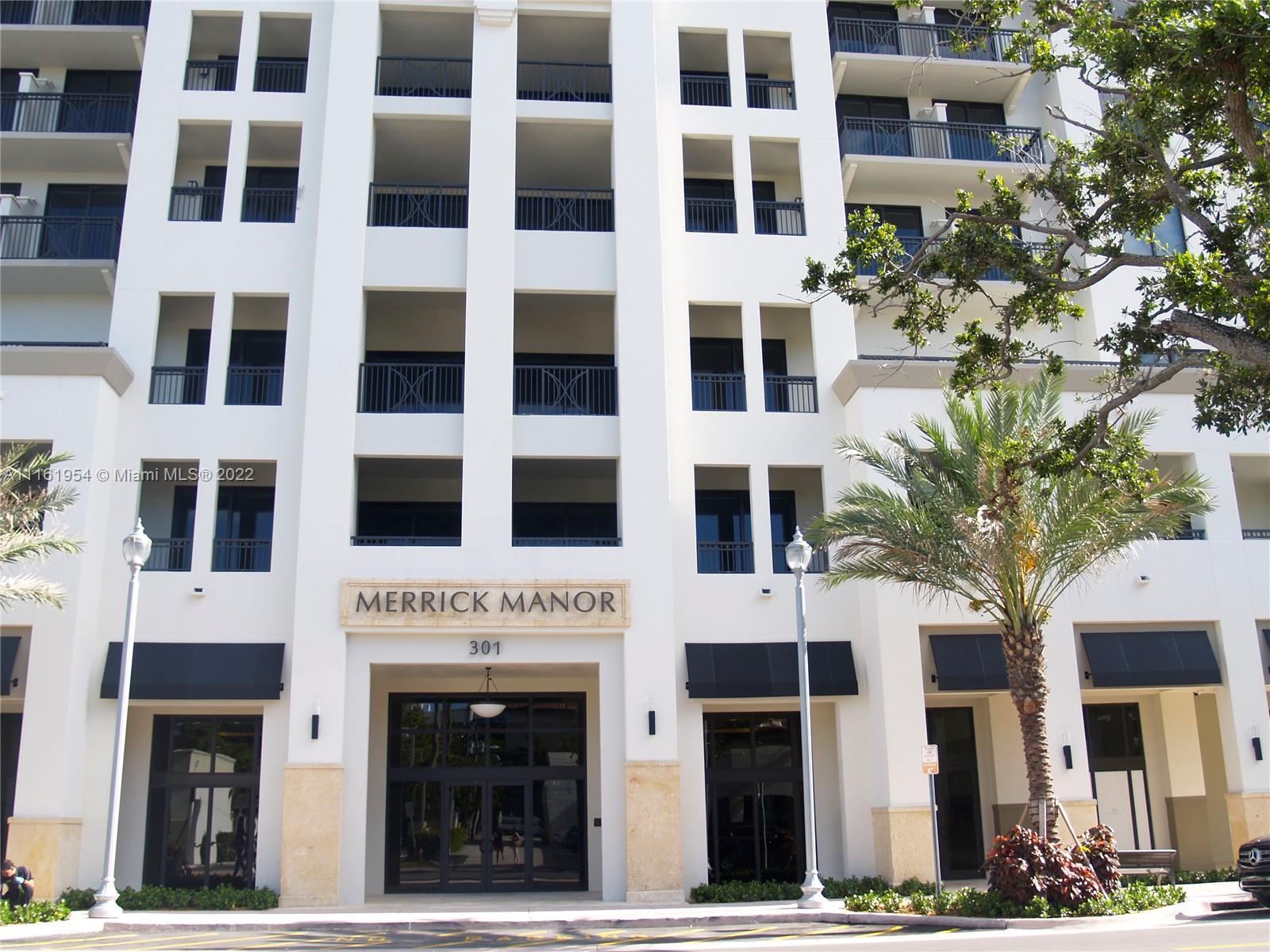 Excellent location Merrick Manor is just one block to Villas of Merrick Park Mall ! . Unit has high ceiling, ceramic floor, walking closet and blinds. 1 Assigned cover parking. Amenities such as Pool, BBQ area, Gym and Party room with kitchen. 24 hours security at lobby.