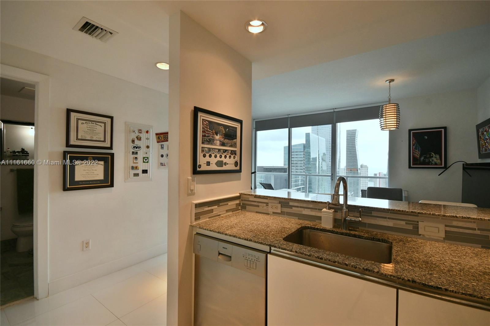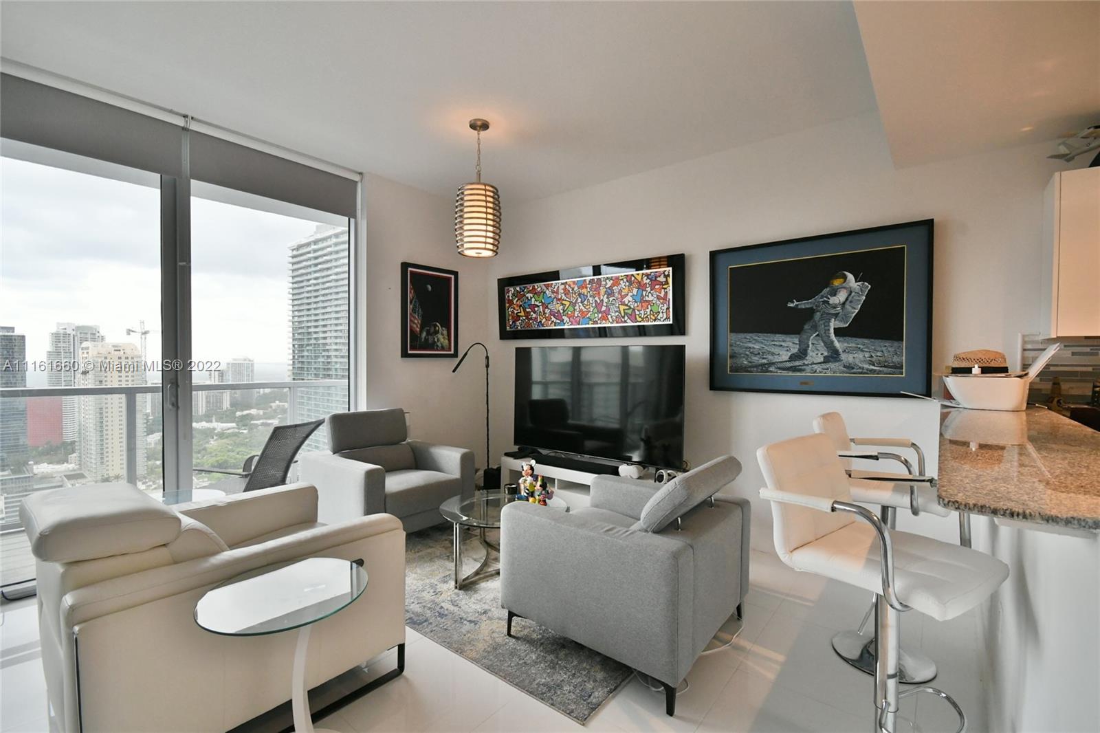 Brickell studio with amazing city and even bay views. Updated kitchen cabinets and backsplash, flooring, and partial bathroom to name a few. Luxury building with pool, hot tub, exercise room, conference room, valet parking, onsite management and more. In the heart of Brickell so just take the elvator down and walk to shopping, cafes, and restaurants.