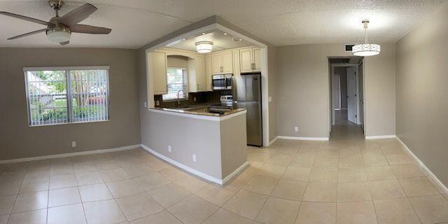 RENOVATED IN 2019 1 BEDROOM 1.1 BATH SUNNY & BRIGHT FIRST FLOOR CORNER UNIT WITH CENTRAL A/C WHICH IS 4 YEARS OLD WATER HEATER INSTALLED IN 2019. STAINLESS APPLIANCES, CERAMIC TILE THROUGHOUT, BOTH BATHROOMS HAVE BEEN RENOVATED WITH ATTENTION TO DETAIL .BEDROOM CLOSET HAS CUSTOM SHELVING. PAVERS WERE INSTALLED AT THE BACK ENTRANCE TO THE CONDO IN FRONT OF THE PARKING SPACE FOR EASE OF ACCESSIBILITY. CASH IS THE PREFERRED TERM OF PAYMENT. CENTURY VILLAGE HAS A FULLY EQUIPPED FITNESS CENTER, CLUBHOUSE WITH THEATER, TENNIS, BOCCE, INDOOR & OUTDOOR POOLS, ON SITE BEAUTY PARLOR, LIBRARY, FREE TRANSPORTATION, SECURITY PATROL, AND ON SITE MEDICAL CENTER.
