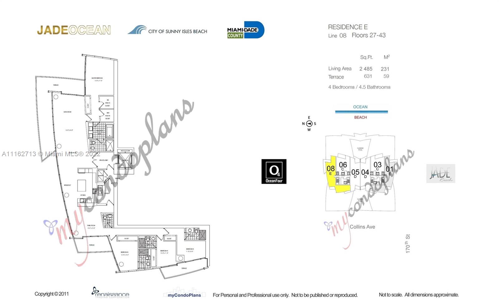 Spectacular turnkey, rarely available, 4 bedroom corner unit at Jade Ocean. This 2,485 sq ft unit is offered fully furnished. Elevated outdoor living from the spacious terraces wrapping around the unit and offering the most spectacular direct ocean views and city views. The unit also offers two assigned parking spaces. Jade Ocean features top notch amenities including full beach service, excellent fitness center, sunrise and sunset swimming pool, children's playroom, spa, concierge and valet.