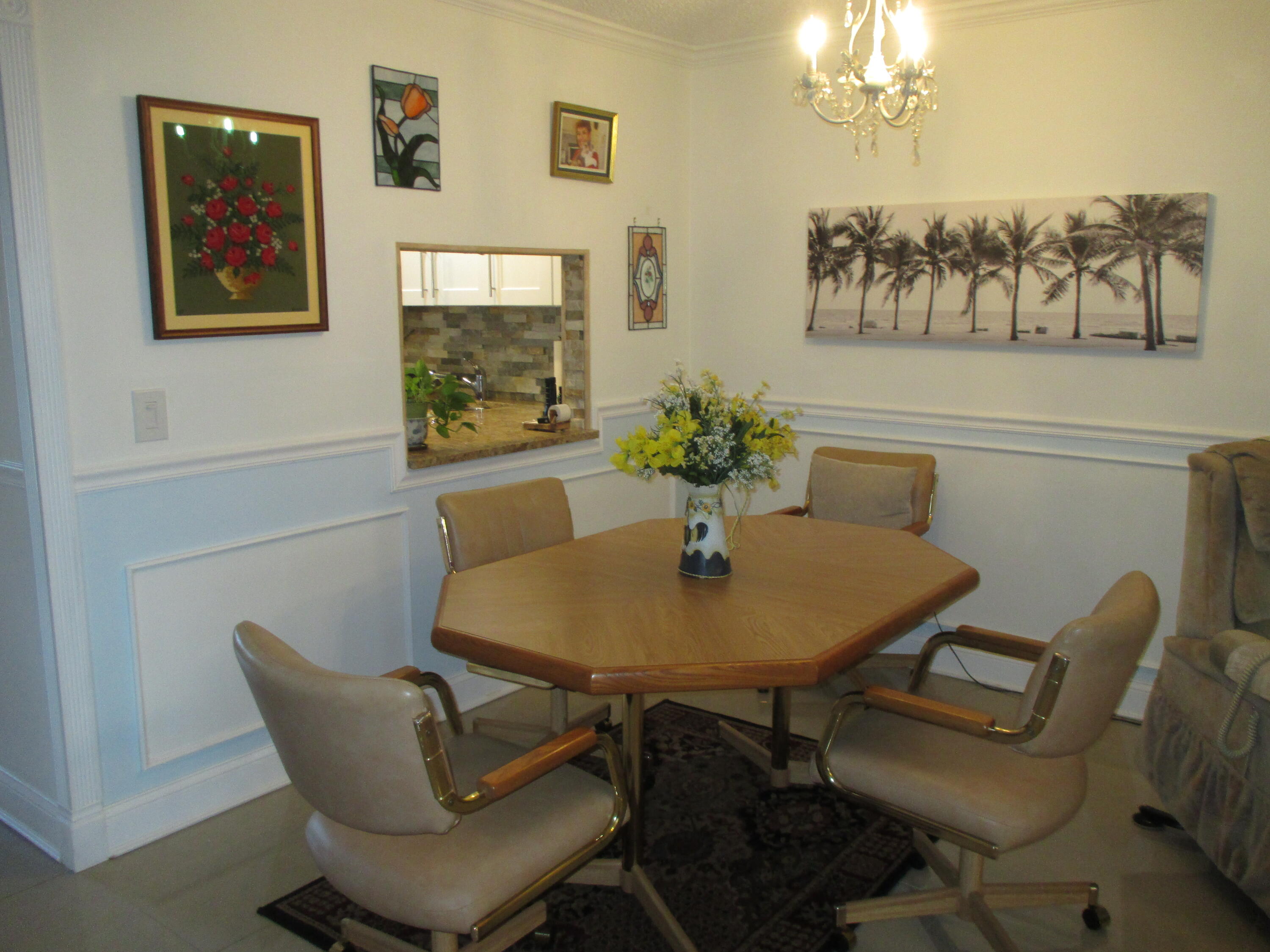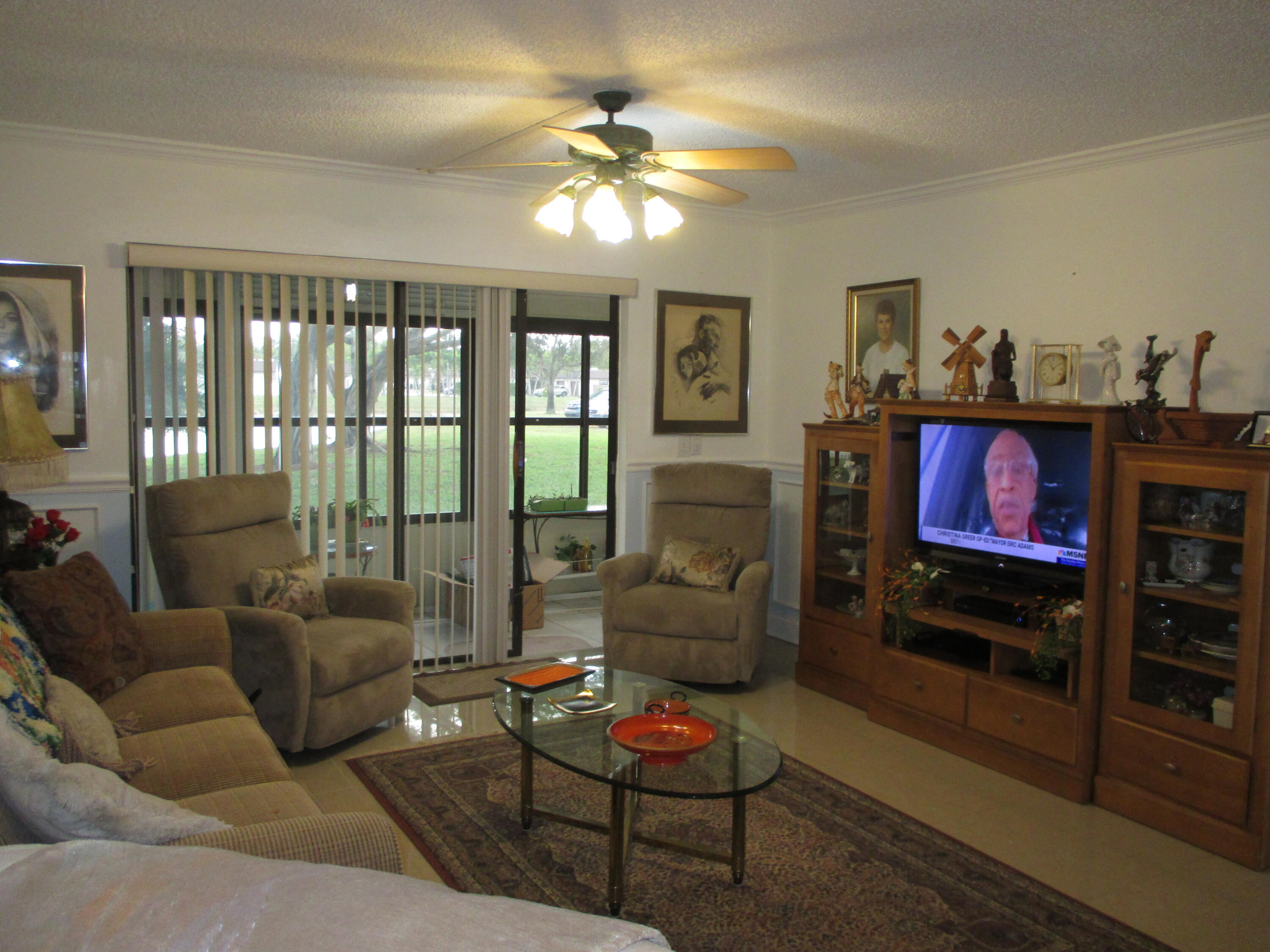 Move-in ready updated unit. Kitchen has granite counters, stone backsplash, soft close cabinet doors, GE appliances installed 2017. 24'' tile floors throughout. BR's & Kit windows are IMPACT. Front loading Samsung W/D. Updated guest and master bath with tiled walls and tiled walk-in showers. Crown molding in Bedrooms & LR/DR. 5 1/2 inch baseboards throughout. Enclosed patio with removeable acrylic windows and roll down shutters for hurricane protection. Lots of amenities included in monthly maintenance. Comcast Xfinity cable with high speed Internet. 24/7 guard gated, Clubhouse with Pool, gym, hot tub, auditorium, social director and so much more. Convenient location to shops, malls and approx 20 min to PBI Air port. (one occupant must be 55+) Come Discover Golden Lake