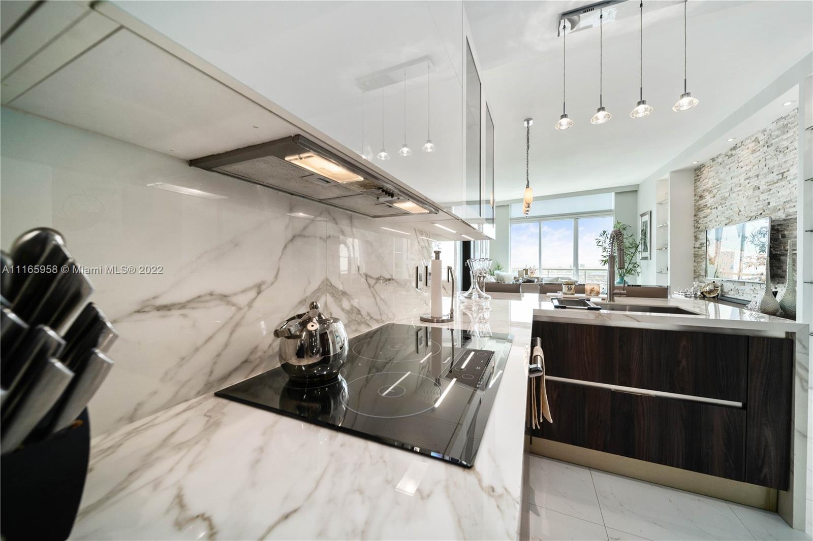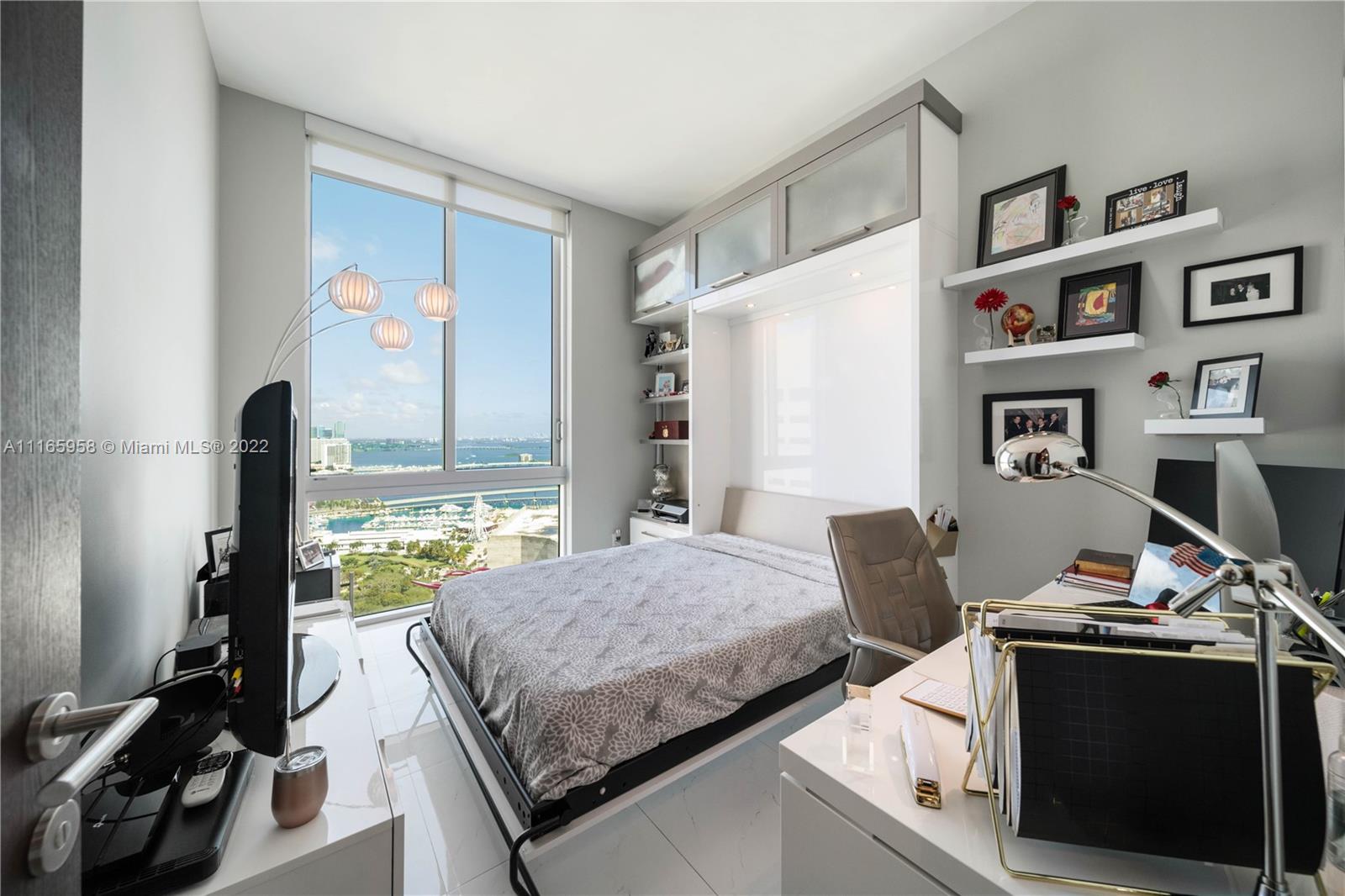 Breathtaking 3/2 Upper Penthouse with surrounding water views! Custom kitchen designed by premier Italian manufacturer of luxury modern and traditional Italian kitchens. 12 ft ceilings, LED & recessed lighting throughout, state of the art Thermador appliances, motorized window treatments w timer, floating cabinetry, waterfall showers, 2 Master Walk-in closets, 8 ft custom Transitional walnut wood doors throughout, new AC. Wrap around balcony bringing the square footage of the home to 1,534! Valet, pool deck, 24/7 security, world class fitness center and more! The list is endless. Rare Spectacular find in heart of Miami. Just minutes to Brickell, South Beach, Key Biscayne, Bayside, Design District and so much more! (CHECK OUT THE ATTACHED VIDEO) Call today for private showing.